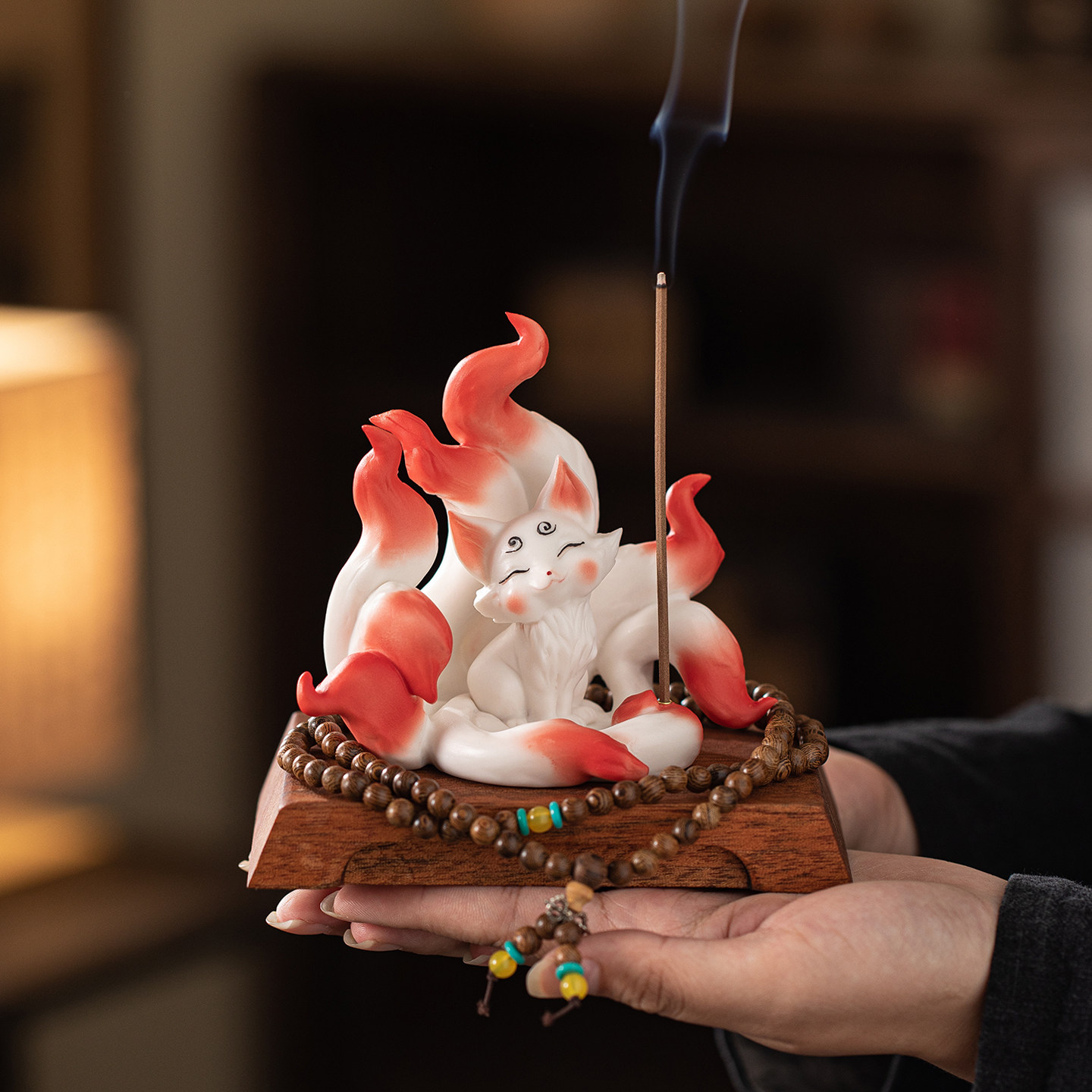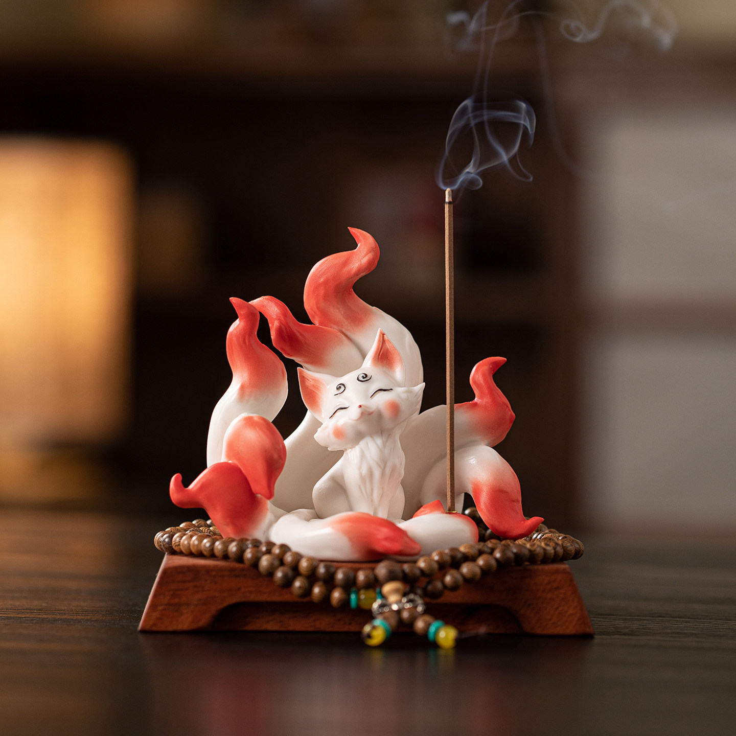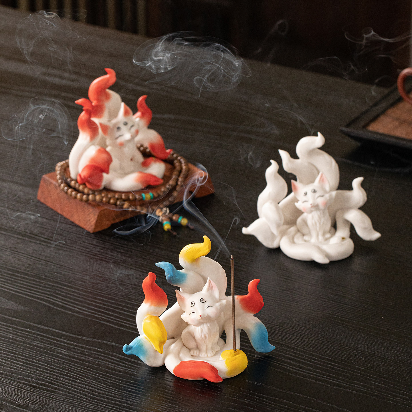 家居桌面陶瓷九尾狐精美香薰炉桌面摆件陶瓷创意香氛炉家居装饰品