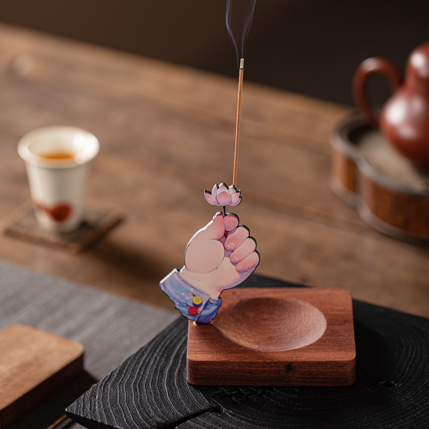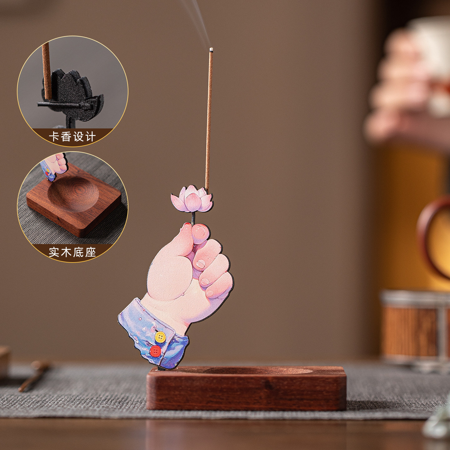 国潮佛手莲花线香插摆件创意手型香托香座香盘香器家居桌面装饰品