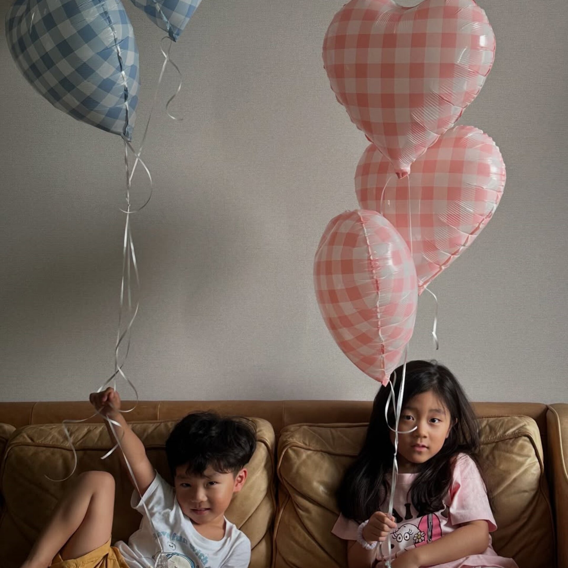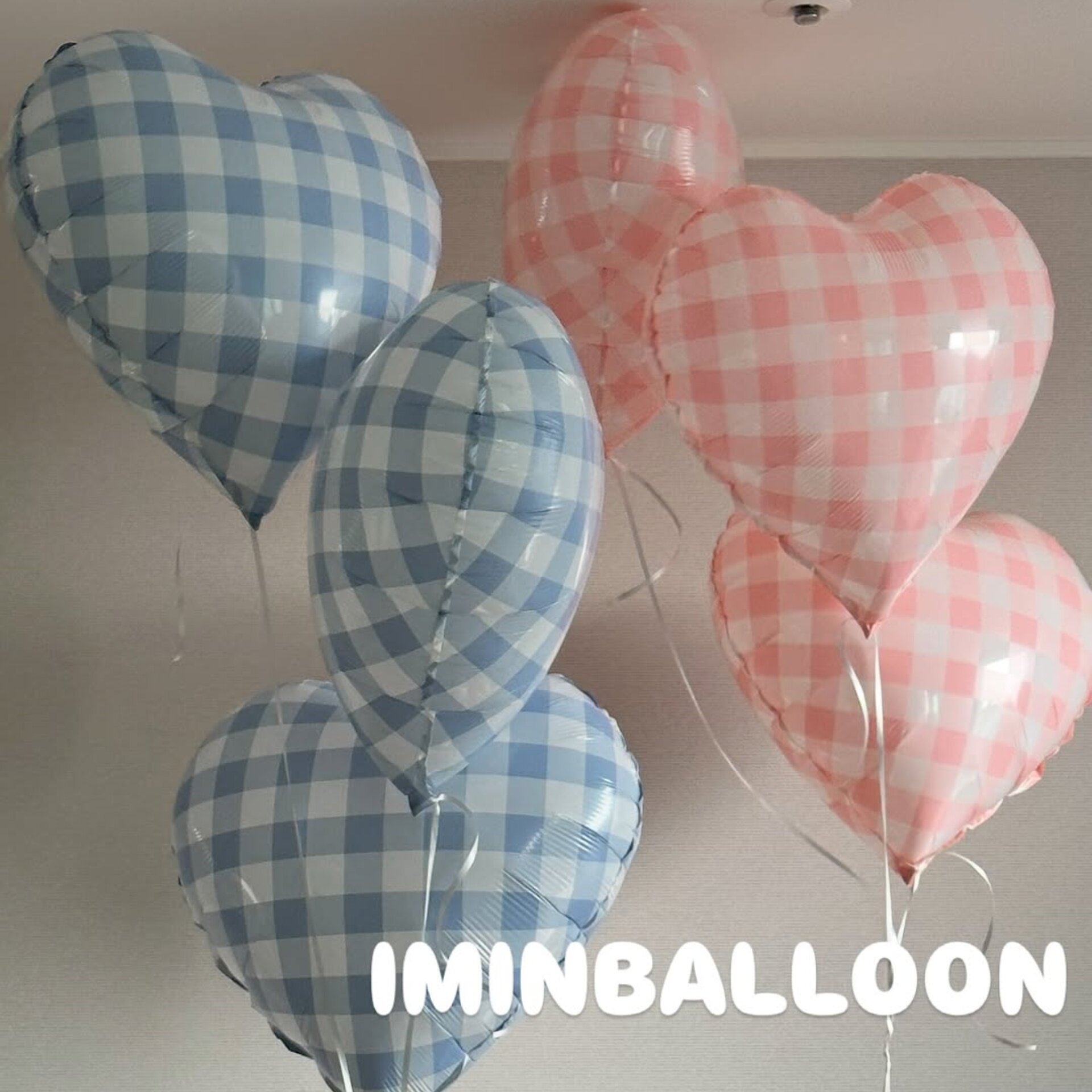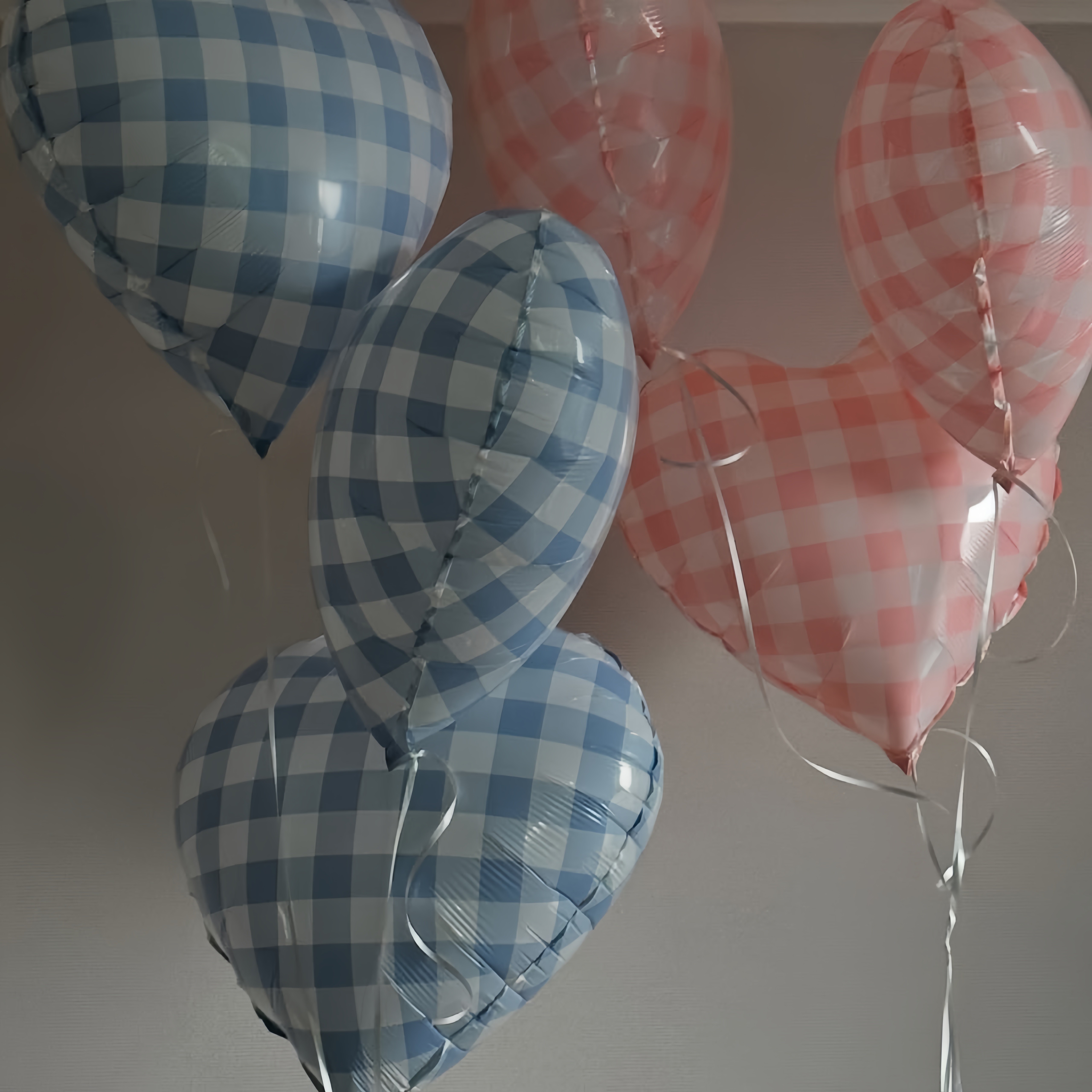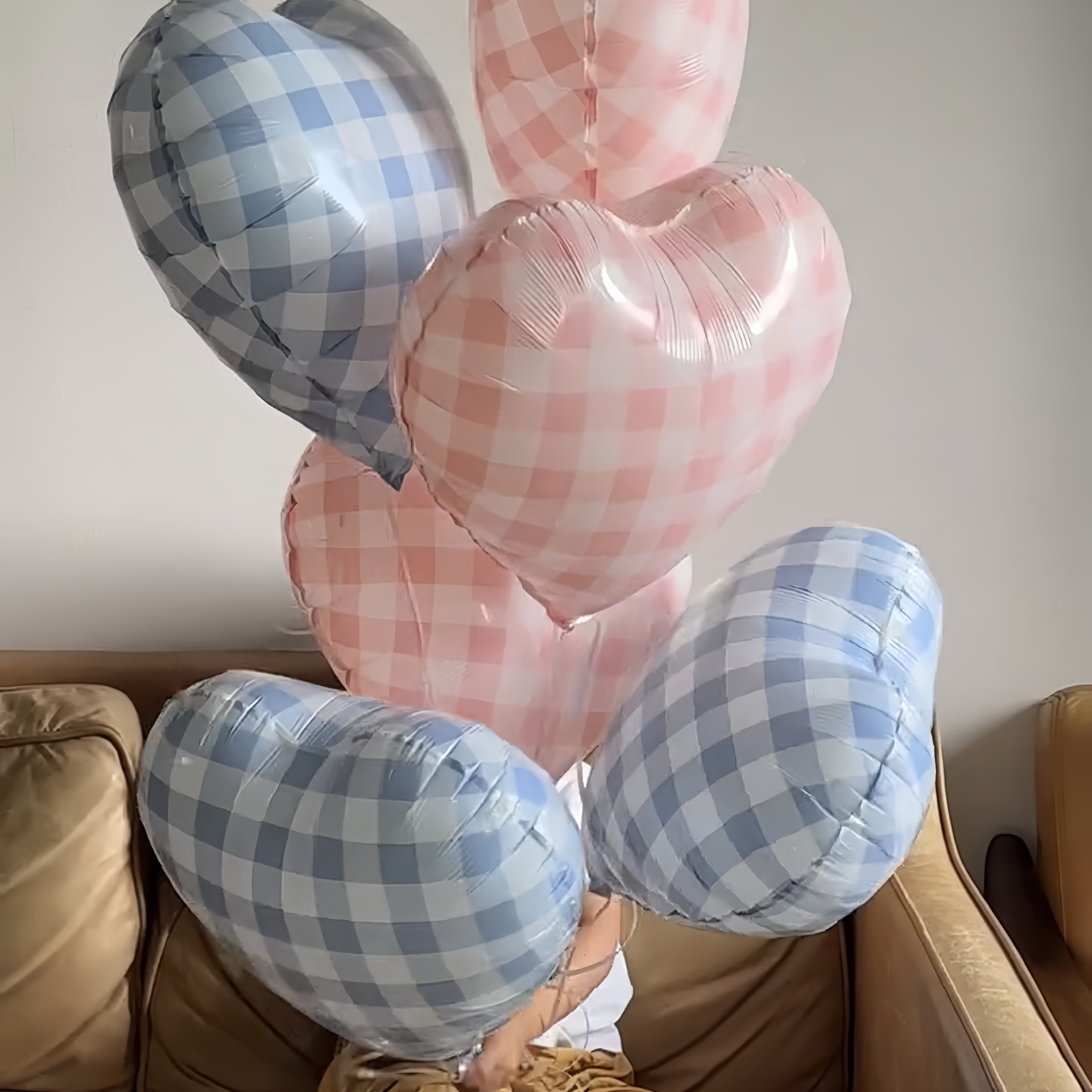 蓝白格子心形气球开业活动派对装饰粉格方块爱心生日装扮布置套餐