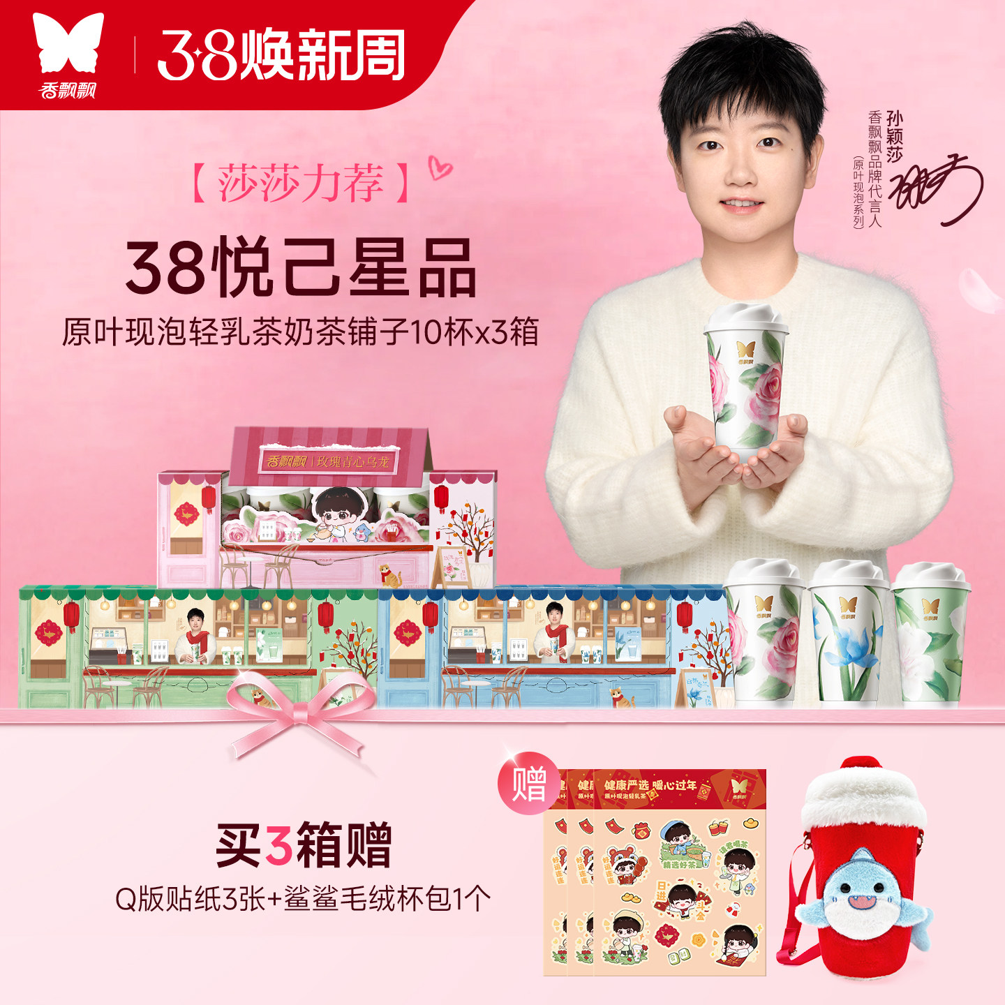 【赠孙颖莎定制周边】香飘飘低GI奶茶铺子轻乳茶玫瑰茉莉白芽10杯