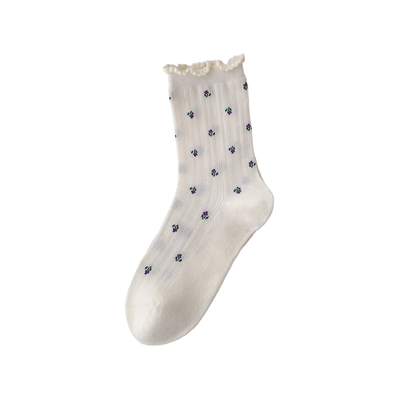 甜美风木耳花边小碎花中筒袜女春夏季堆堆袜日系无骨少女感袜子