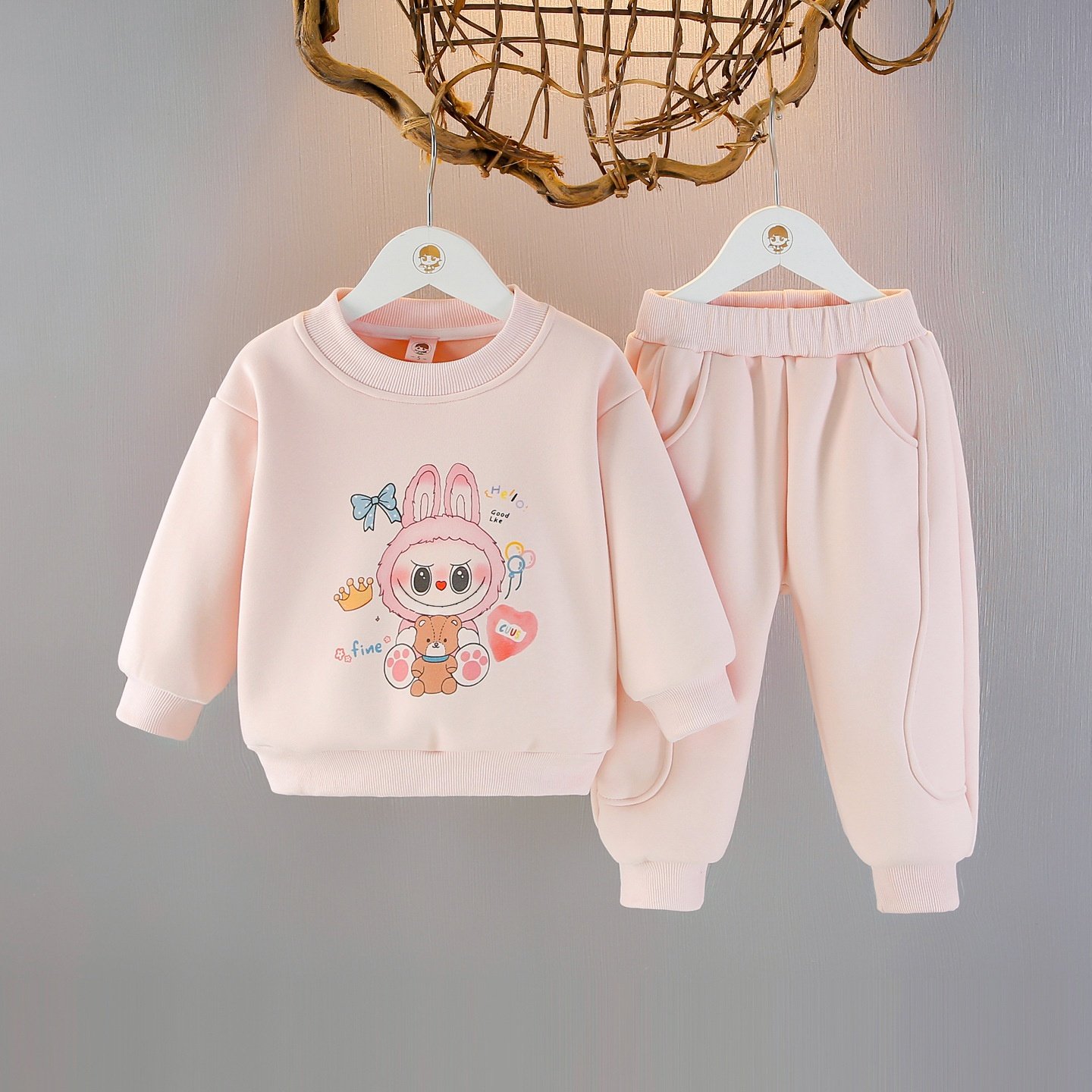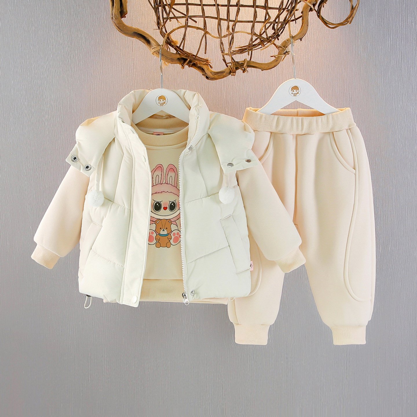0-7岁女童加绒卫衣三件套秋冬洋气保暖儿童冬装外出服套装新潮