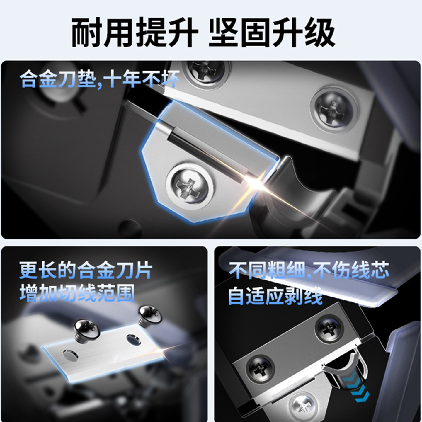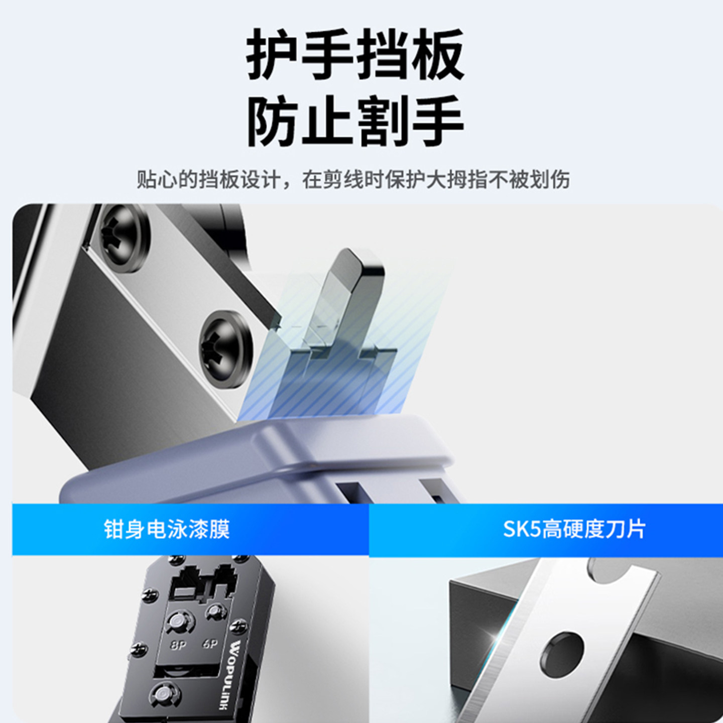 沃浦网络网线钳子专业级水晶头压线钳家用超六类压线钳6P8P快速剪切精准压接高碳钢大刀片自适应剥线夹线钳