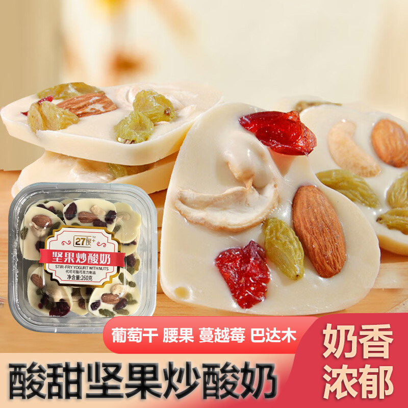 坚果仁酸奶片27度+坚果炒酸奶代可可脂巧克力奶制品休闲零食260g