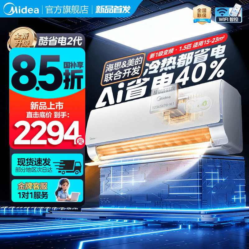 26年新品丨美的空调酷省电二代挂机家用冷暖新一级变频官方旗舰店
