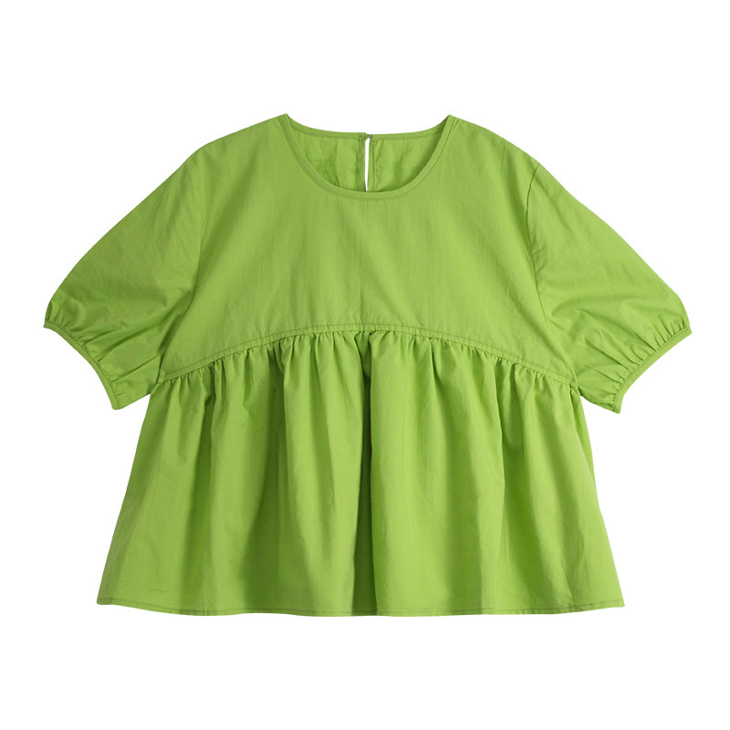 蔡爸爸原创女童装夏季小清新绿色中袖衬衫韩宽松套头上衣279+776