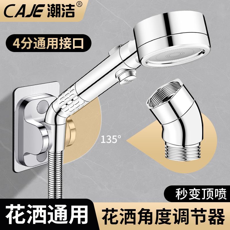 潮洁花洒角度调节器淋浴顶喷转角弯头旋转换手持花洒喷头拐弯接头
