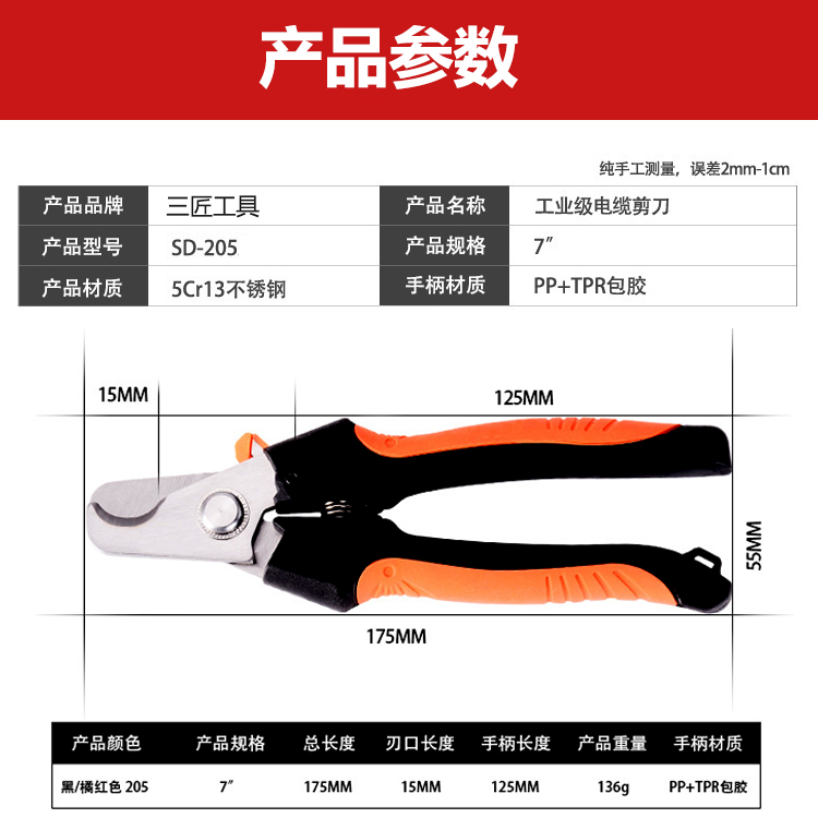 电缆剪刀工具剪线钳电线剪刀钳剥线钳断线钳电工钳7寸绞线钳
