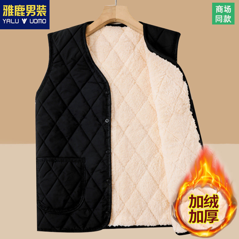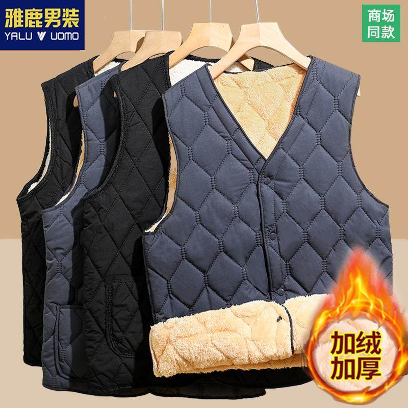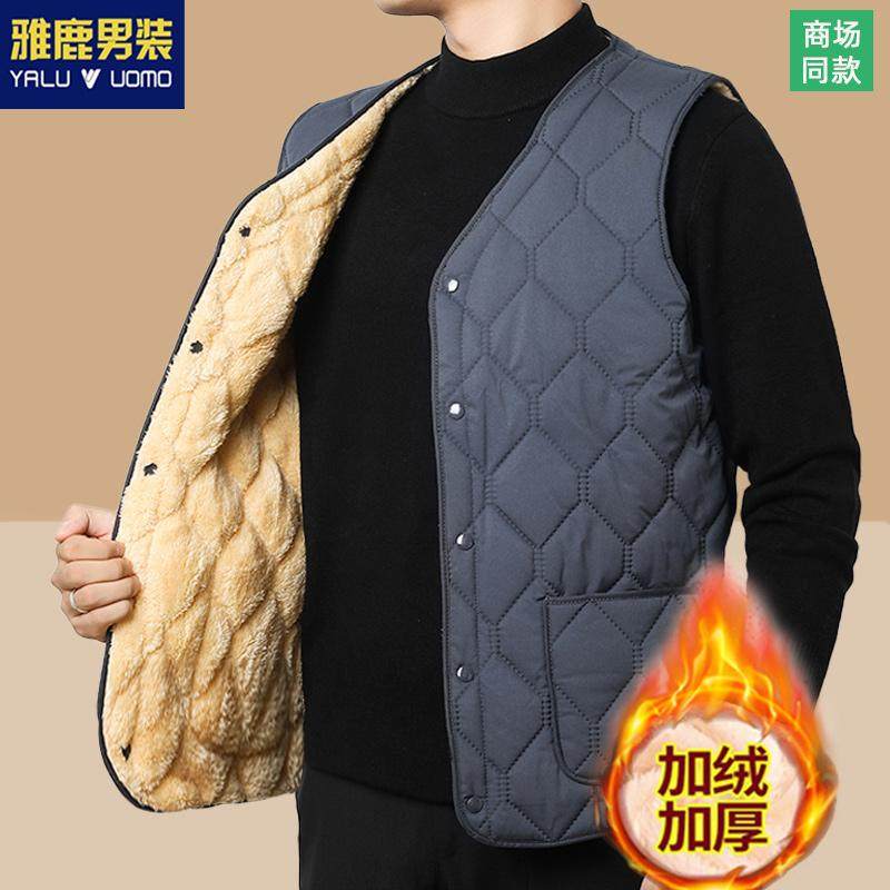 雅鹿男装马甲男冬季加绒加厚保暖背心中老年内穿坎肩冬天男士马夹