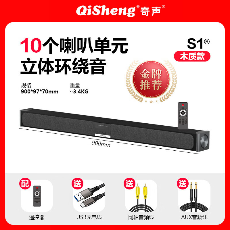 奇声回音壁S1W电视音响伴侣家用客厅蓝牙家庭影院 S1W回音壁音响