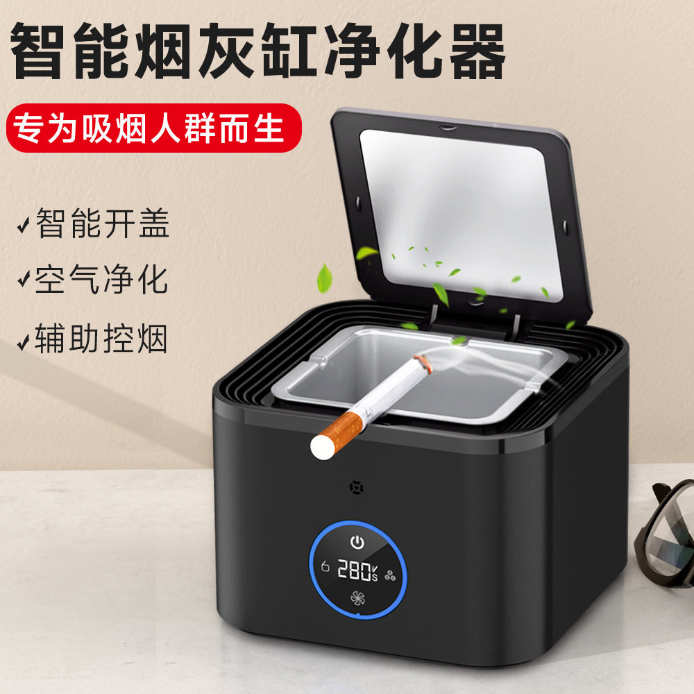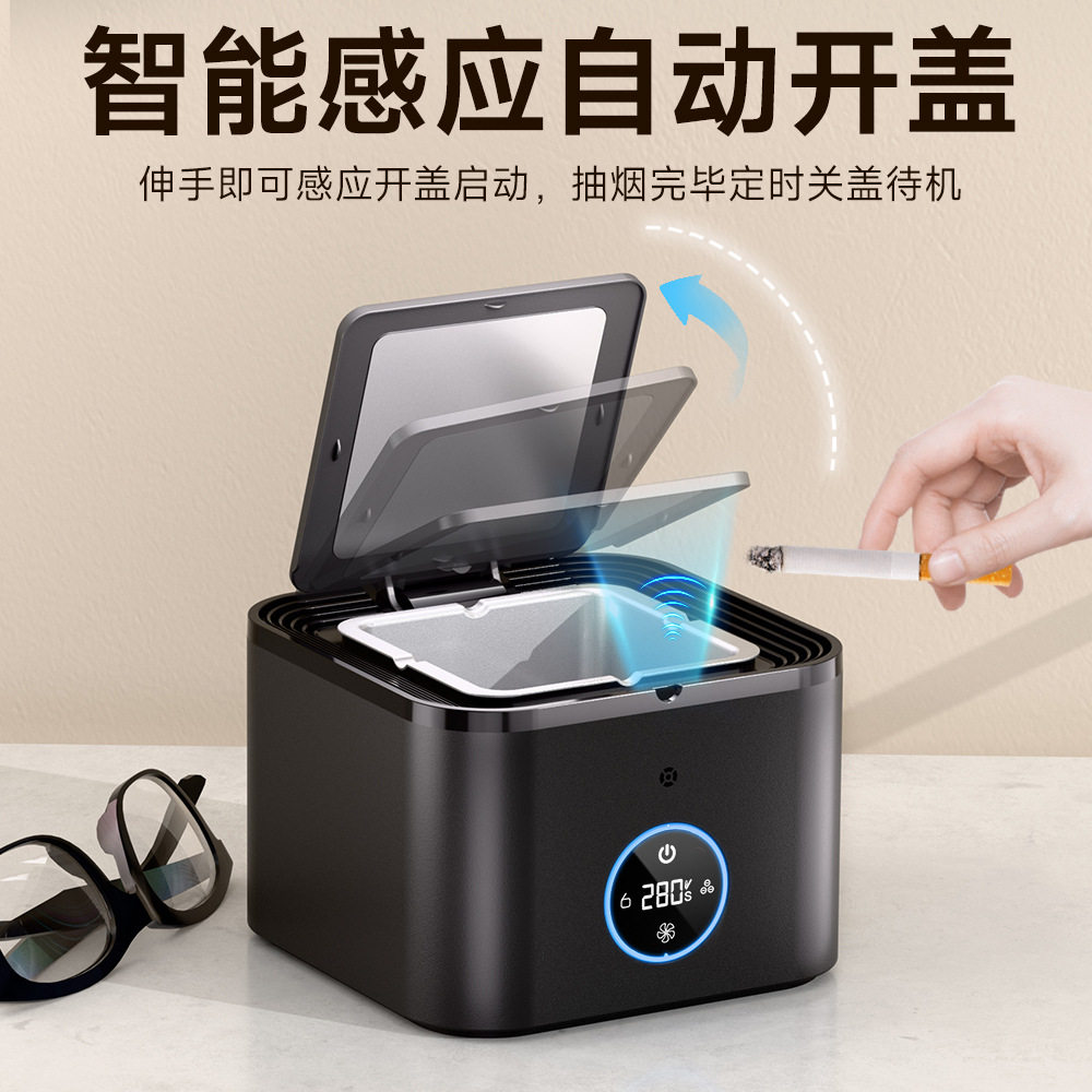 创意智能烟灰缸空气净化器家用商用办公桌面高档带盖防飞灰除烟味