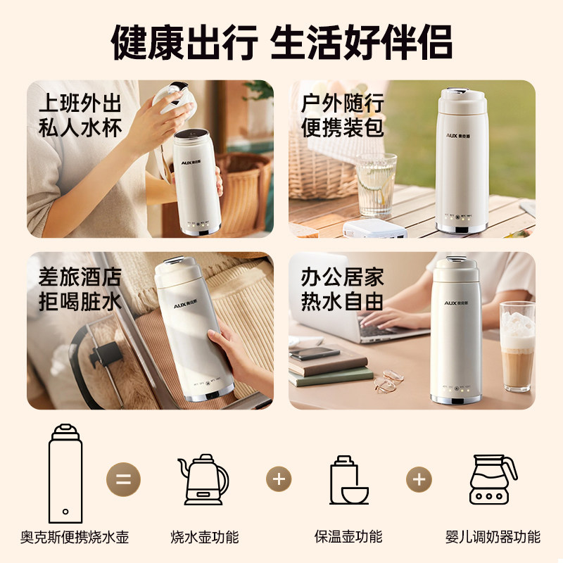 奥克斯便携式电热水杯智能烧水壶小型家用旅行出差烧水杯电热水壶
