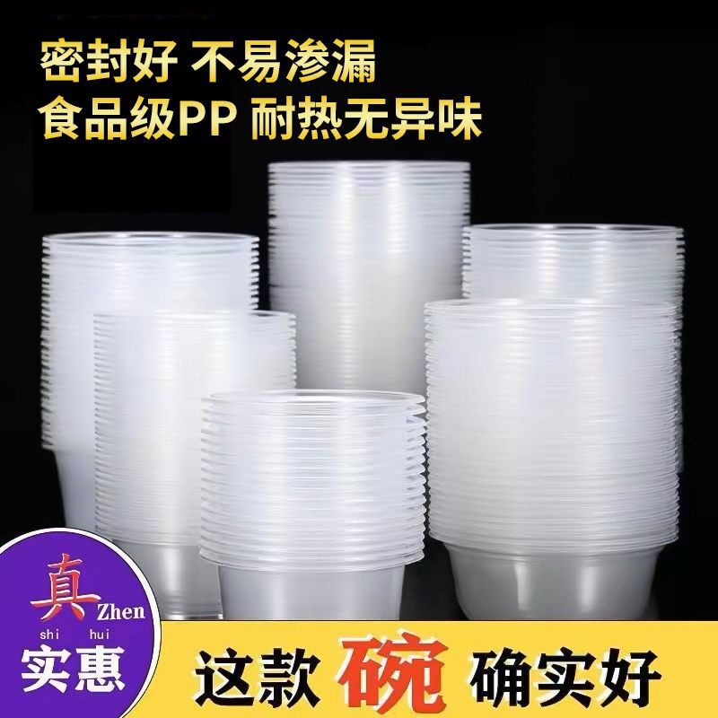 一次性碗塑料食品级家用圆形打包餐盒饭碗冰粉小吃碗带盖餐具商用