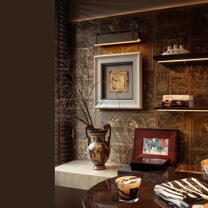 现代中古样板间售楼处书房柜子组合搭配摆件软装饰品组合搭配挂画