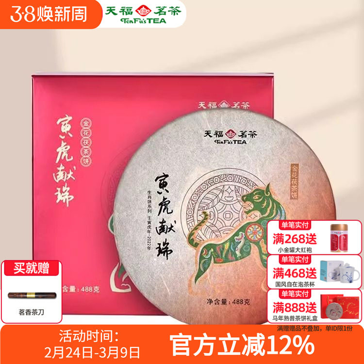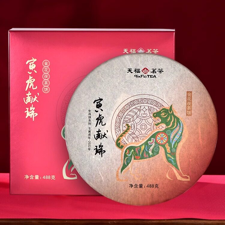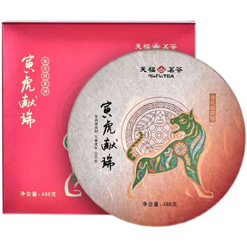 天福茗茶寅虎献瑞黑茶 安化黑茶茶饼 2022虎年生肖饼茶叶礼盒488g