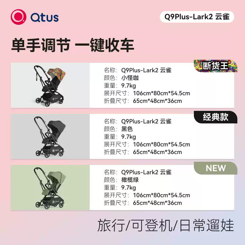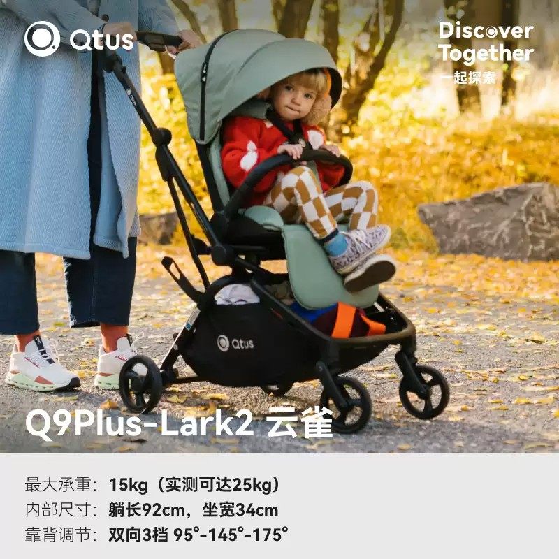 Qtus昆塔斯Q9plus2代四轮婴儿推车新生宝宝护脊靠背双向可坐躺