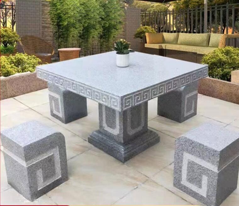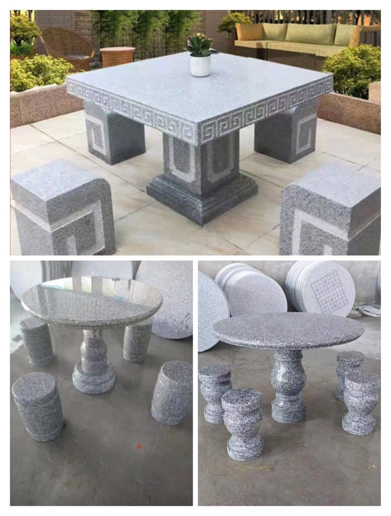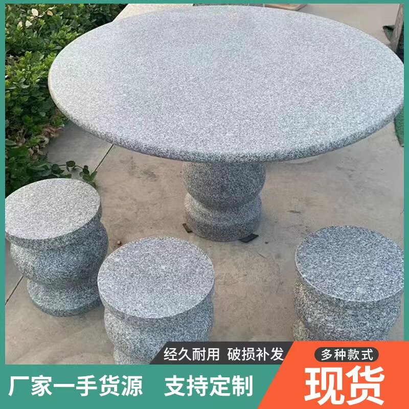 石桌石凳圆桌椅一套户外庭院花园室外石桌子花岗岩天然大理石公园