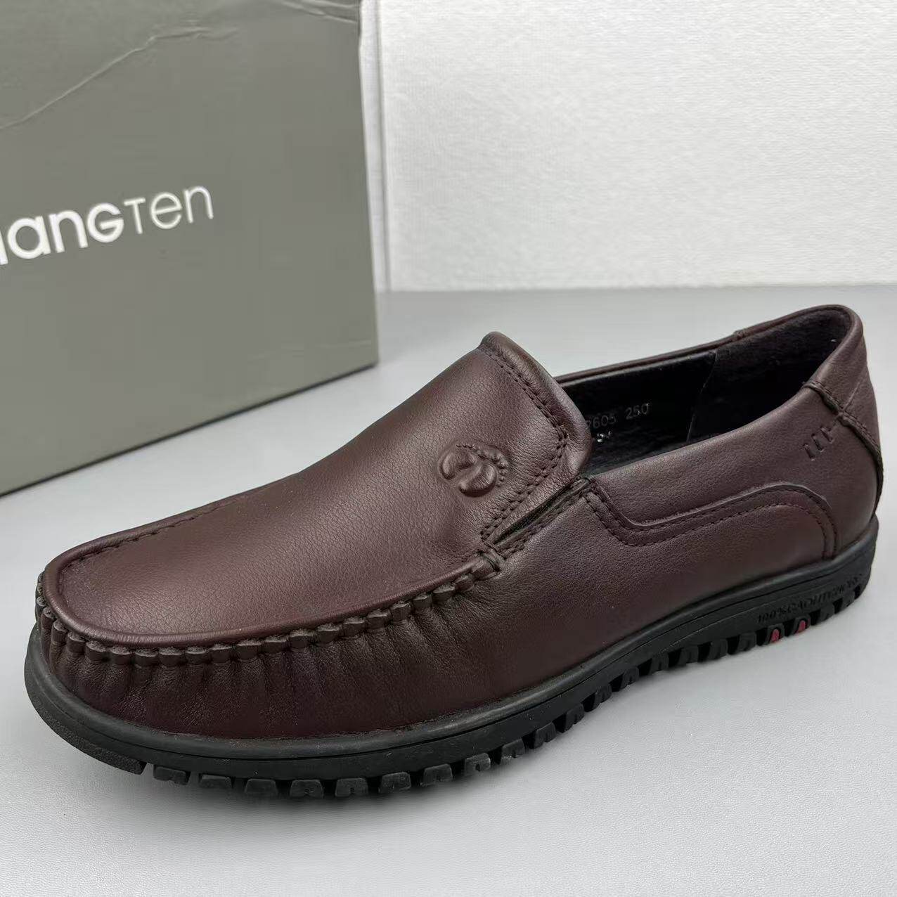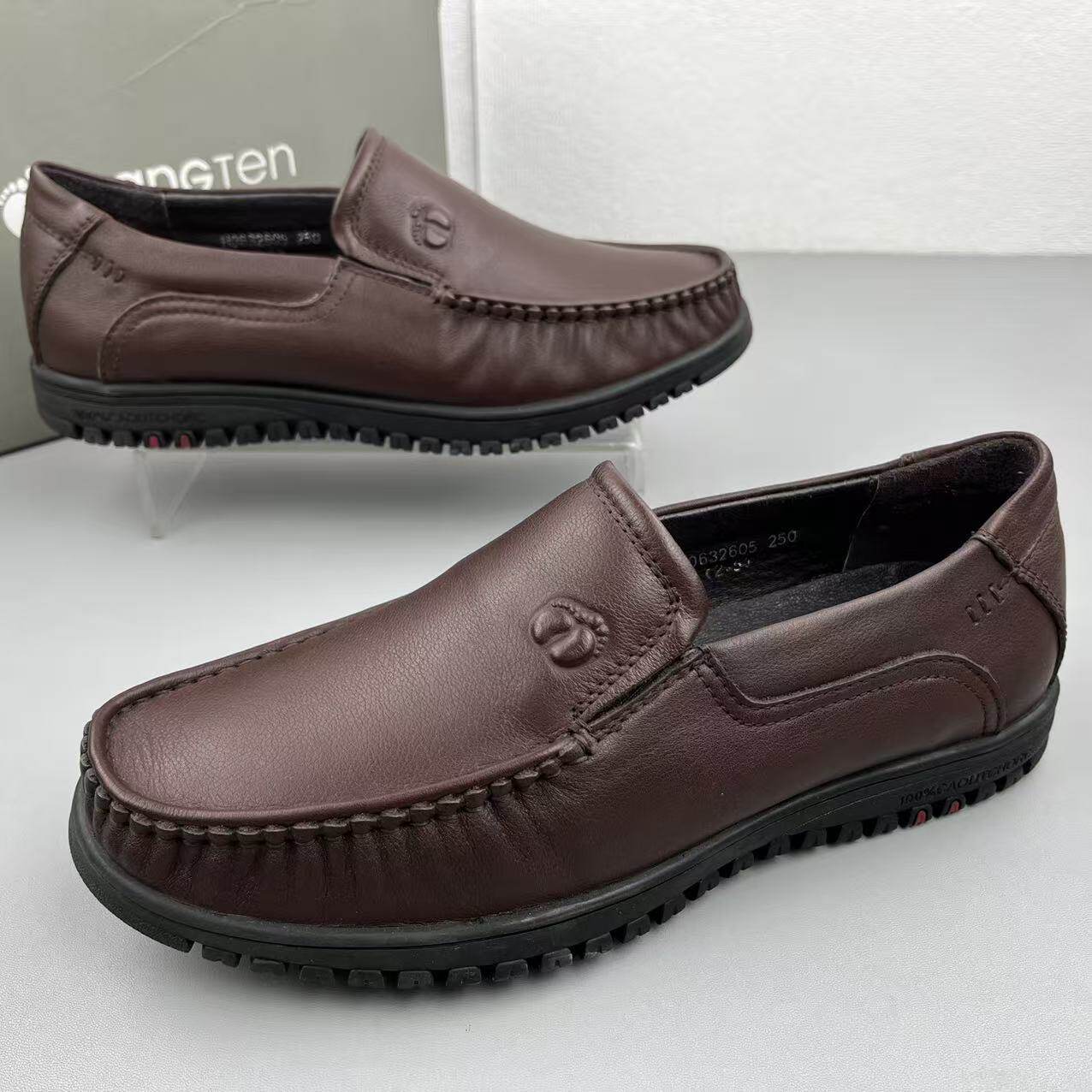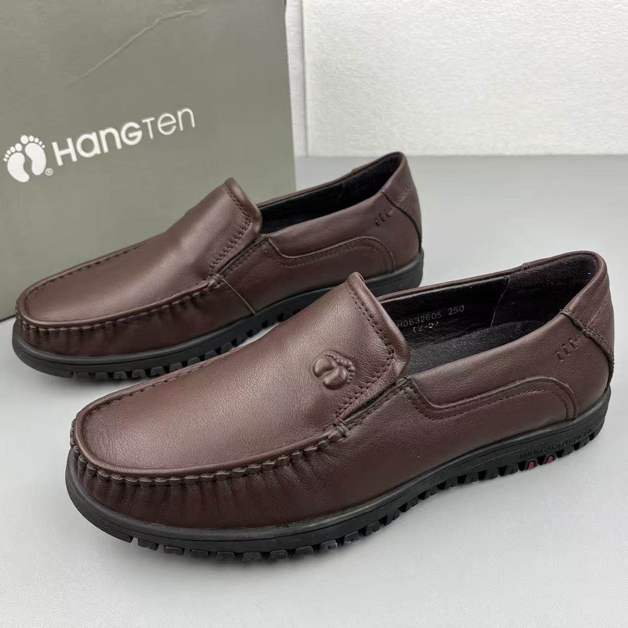奥莱撤柜处理牛皮男鞋户外流行通勤单鞋百搭一脚蹬休闲皮鞋清