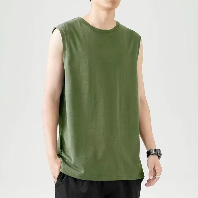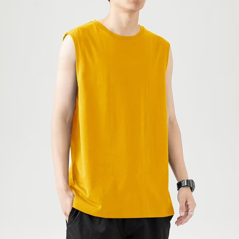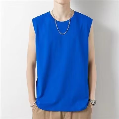 小清新重磅纯色背心宽松男坎肩港风薄款夏季休闲无袖T恤运动打底