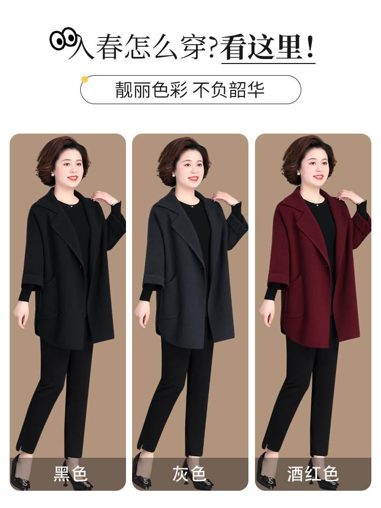 妈妈秋装洋气呢子外套中年女士风衣高贵中老年秋冬针织双面呢大衣