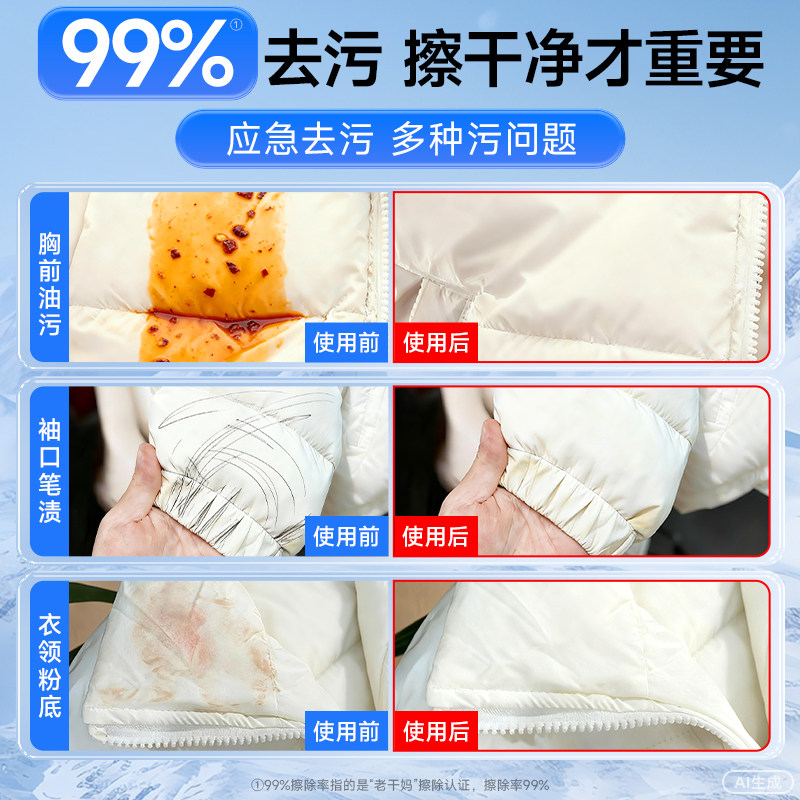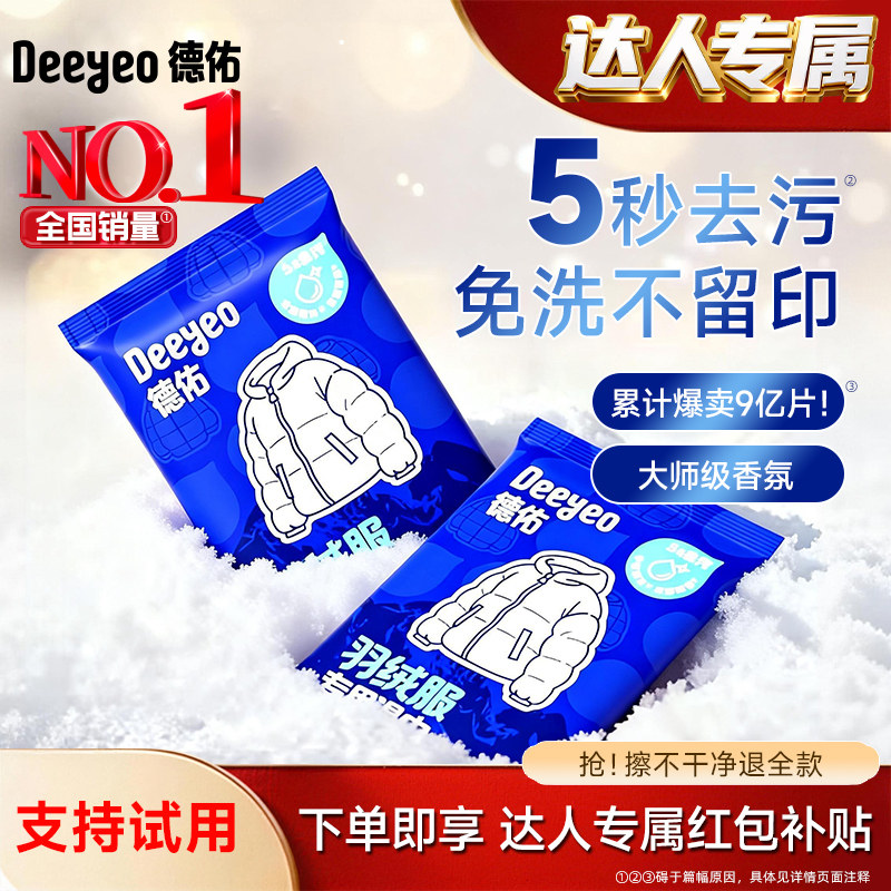德佑羽绒服清洁湿巾免水洗强力去污衣物便捷小包专用去渍纸巾家用