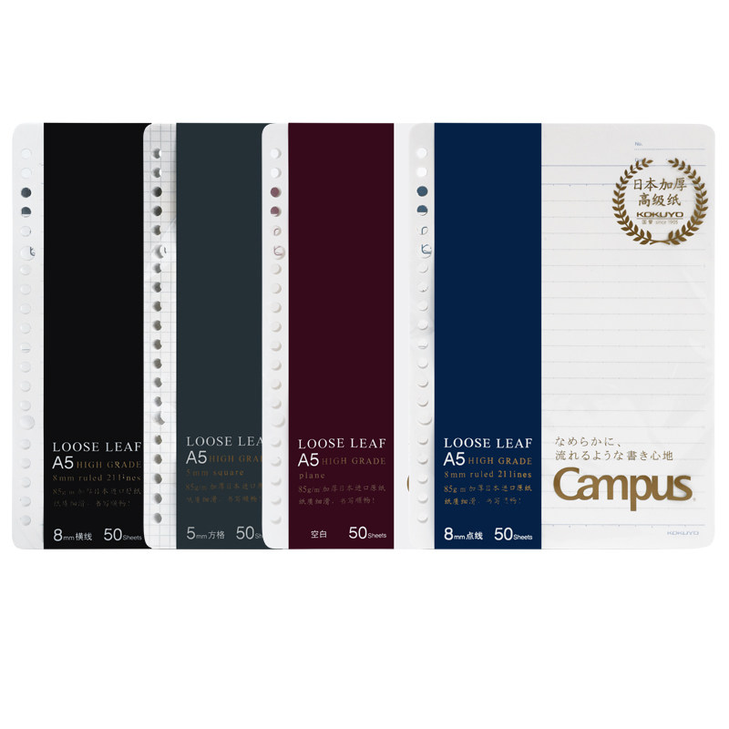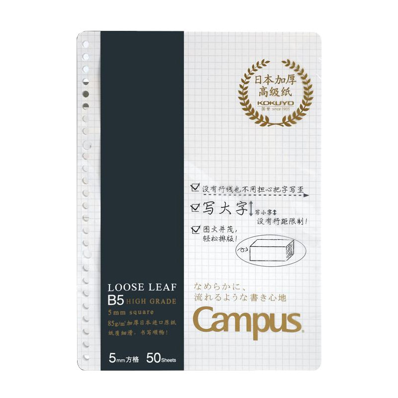 Kokuyo国誉Campus进口A5活页本替芯B5方格空白横线网格加厚85g学习办公书写顺滑不渗墨20孔26孔