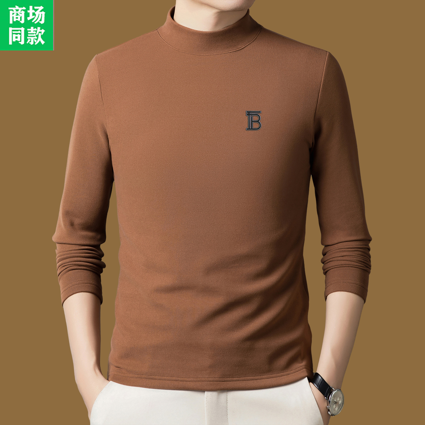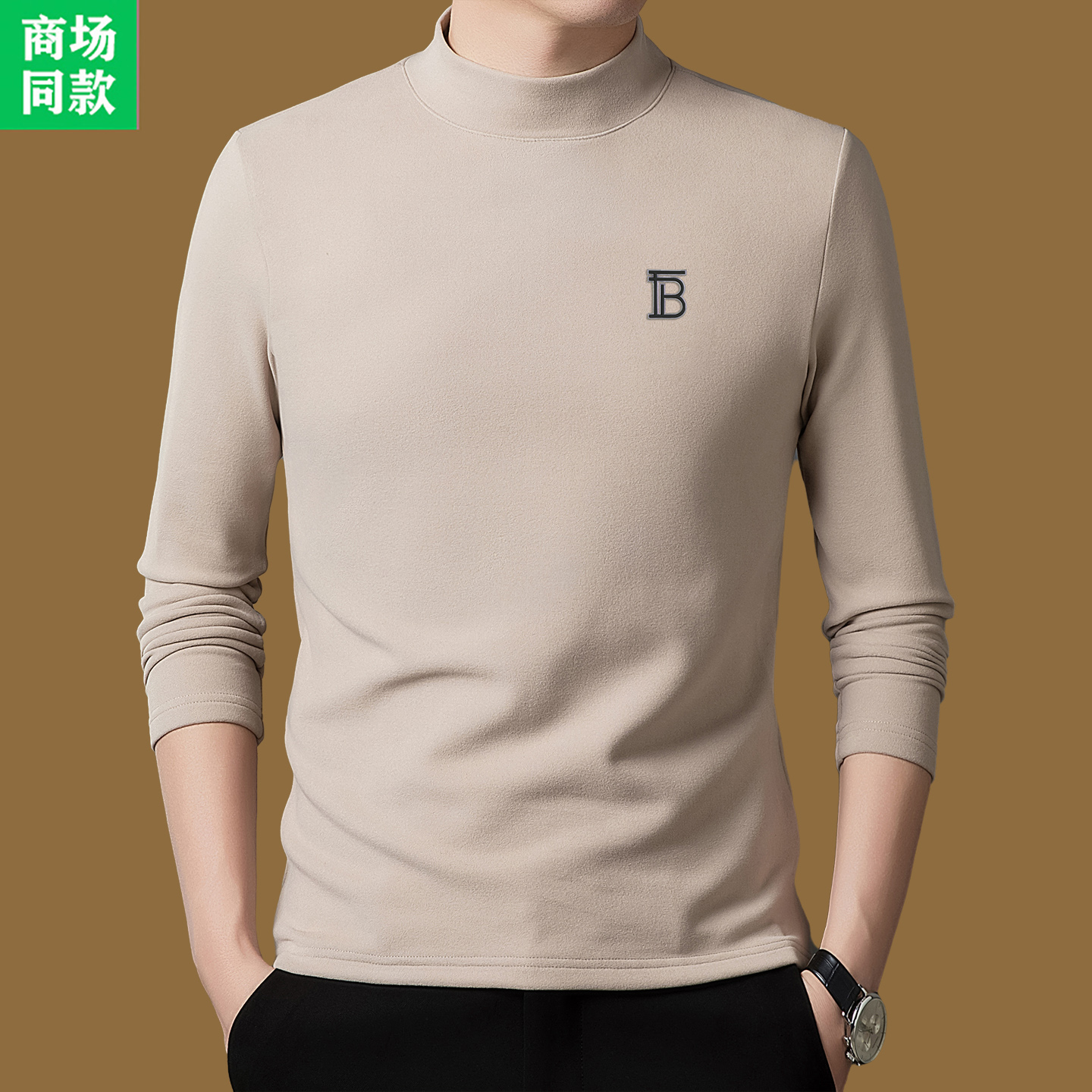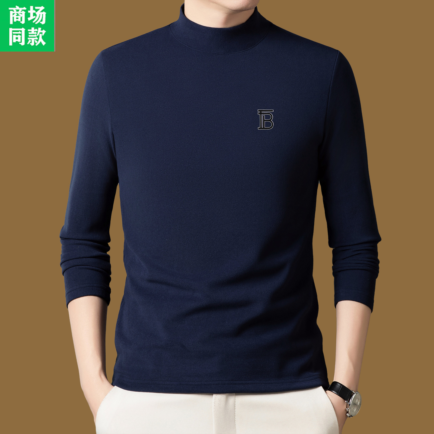 正品意大利德绒长袖t恤男士秋冬半高领双面绒内搭修身打底衫上衣