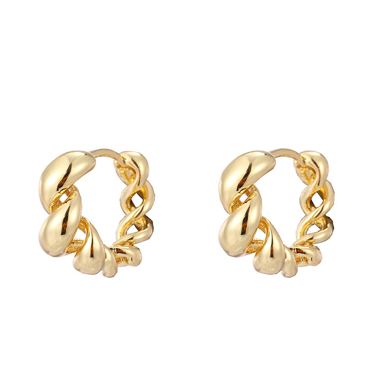 FromSheep超好看独特漂亮金色耳钉女韩式耳环925银针麻花耳圈耳饰