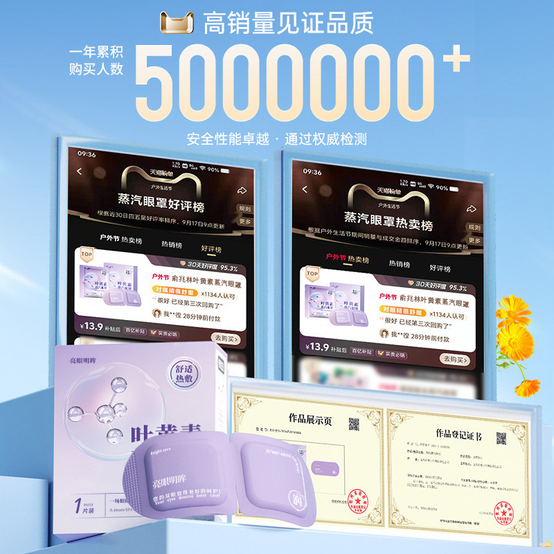 叶黄素蒸汽眼罩缓解眼疲劳热敷护眼罩睡觉专用玻尿酸遮光睡眠神器