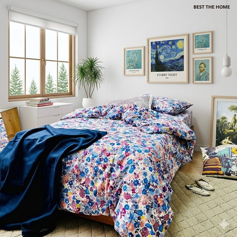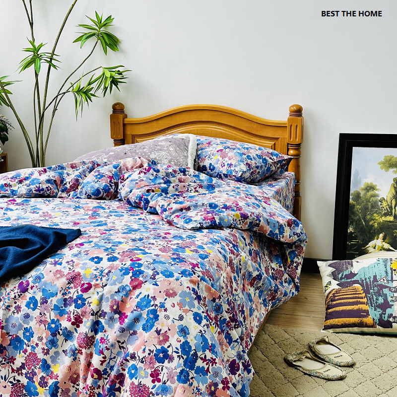 大牌日单 100%棉 15套色平纹印花床上用品 枕套 被套 床单 四件套