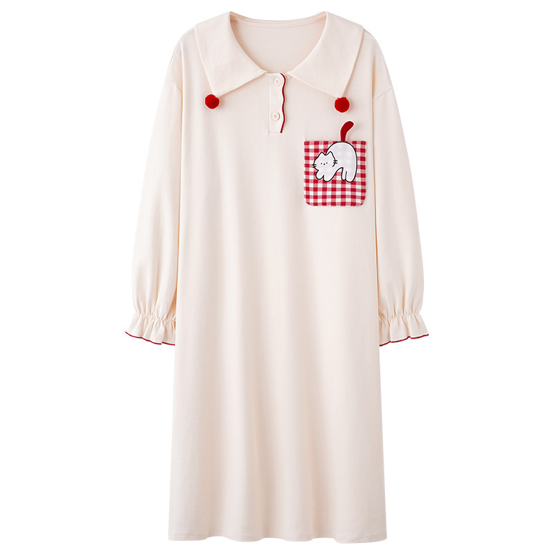 100%纯棉睡裙女款2026新款春秋季长袖卡通公主风中长款连衣裙睡衣