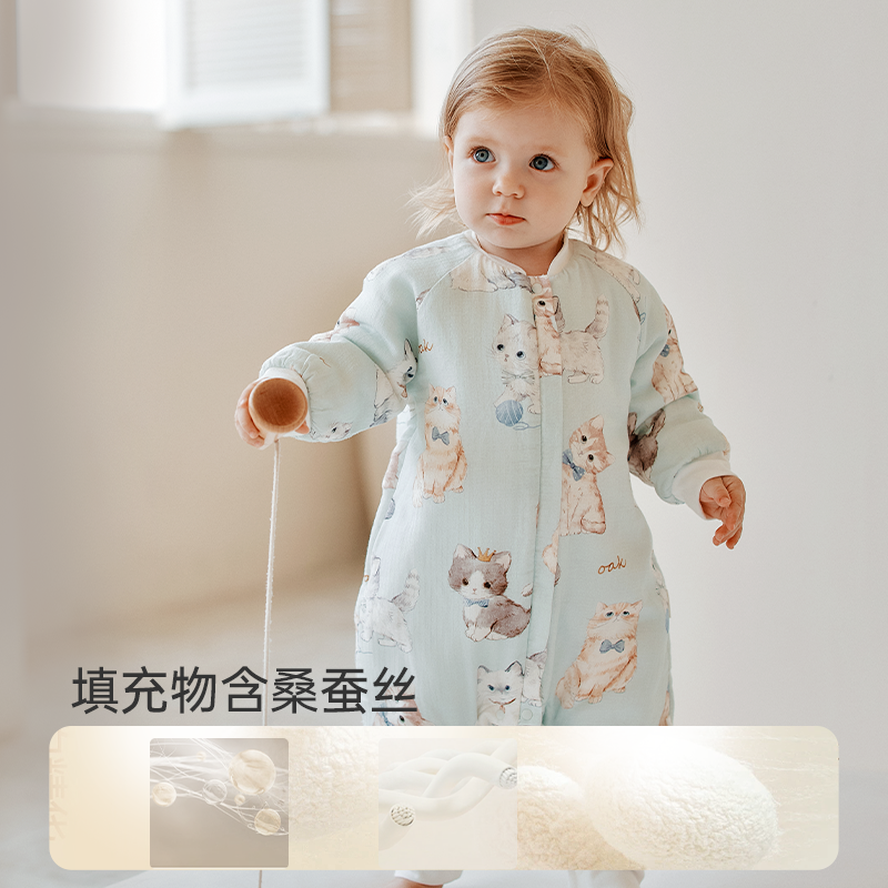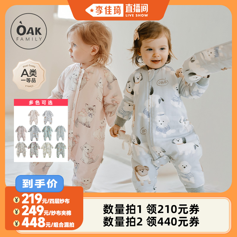 【李佳琦直播间】OakFamily婴童秋冬纱布夹棉睡袋加厚儿童防踢被