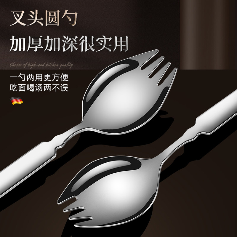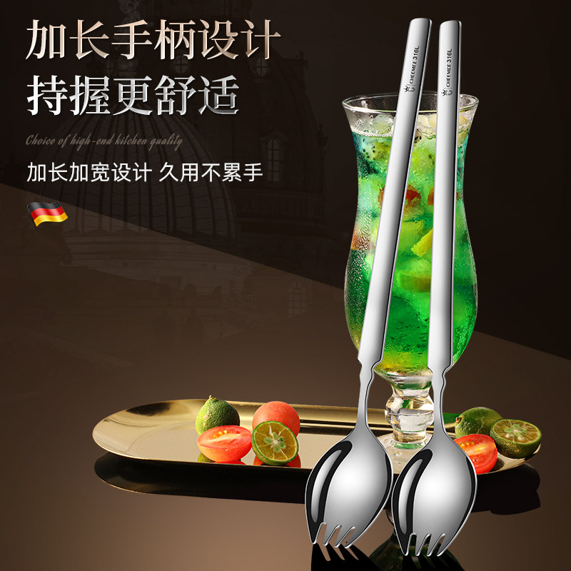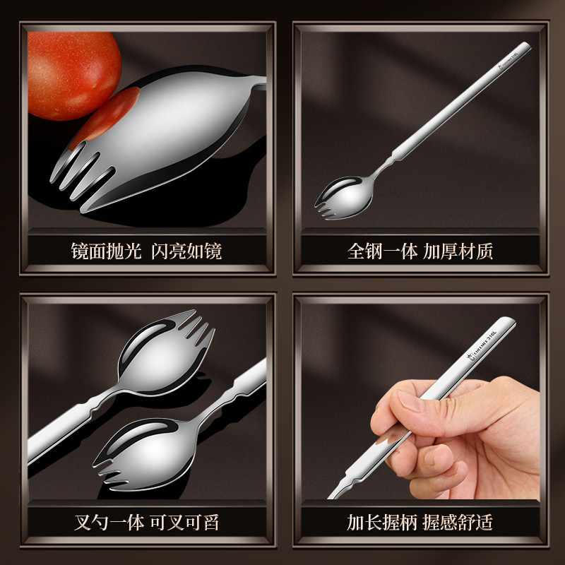 316不锈钢叉子加长叉勺一体沙拉勺蛋糕水果叉西餐餐叉餐具搅拌勺