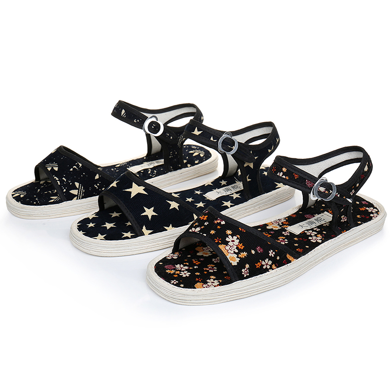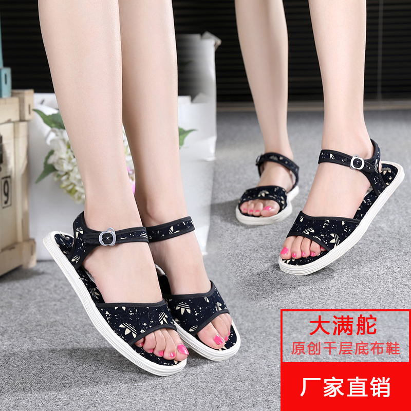 布底老布鞋凉鞋女潮纯手工千层底老北京传统搭扣复古家居居家女鞋