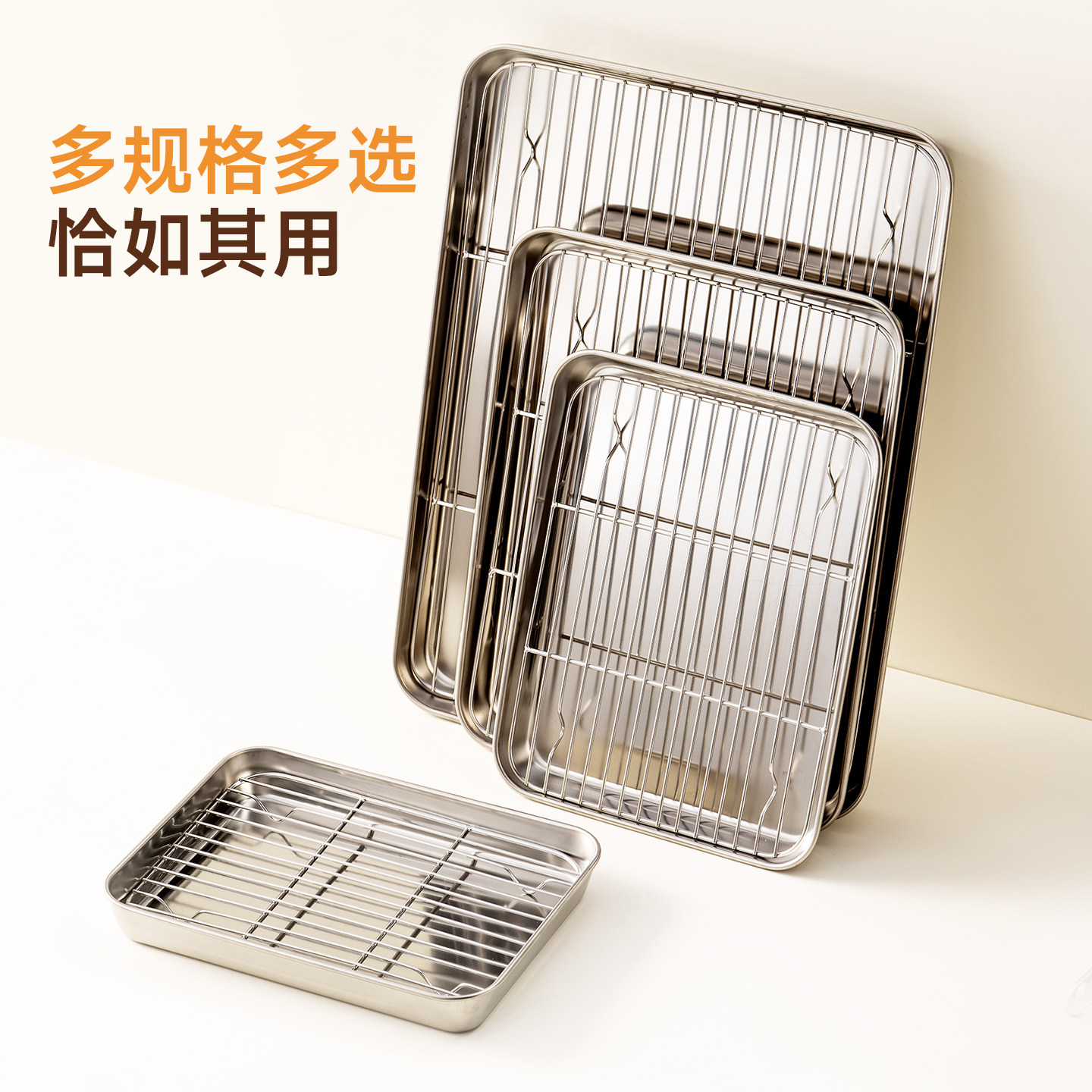 onlycook 304不锈钢沥油盘控油网架长方形备菜盘炸串烧烤专用托盘