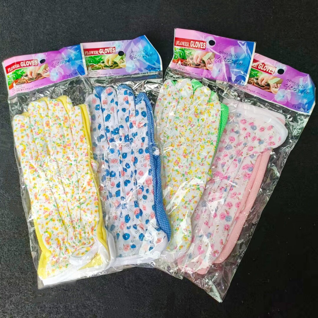 韩全棉三筋防晒手套女点塑春秋夏防滑园艺高尔夫开车纯棉碎花手套