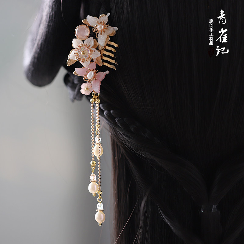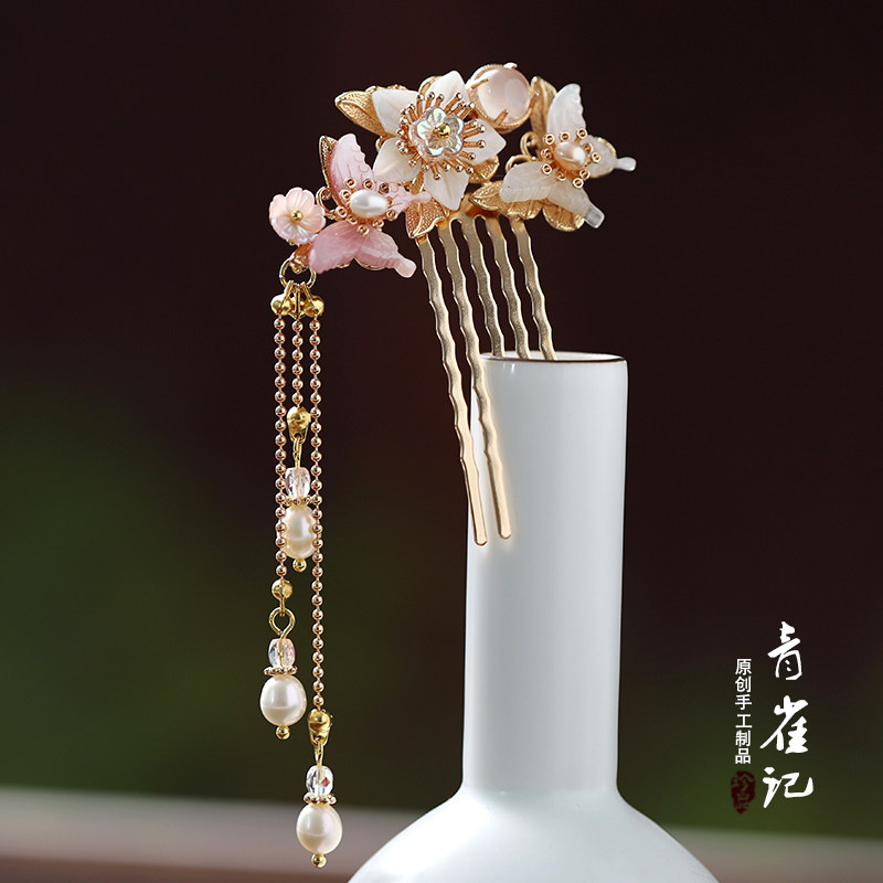 青雀记原创发簪汉服流苏装饰发簪头饰蝴蝶发梳流苏步摇配饰莺歌令