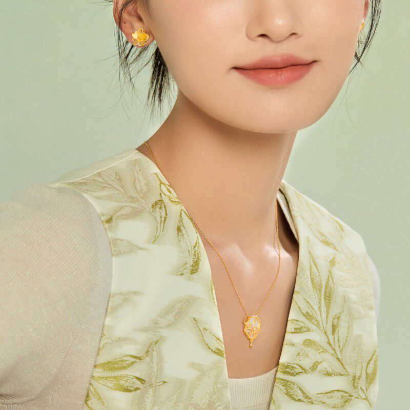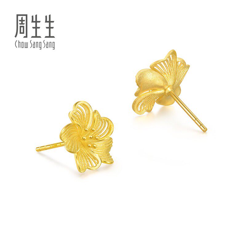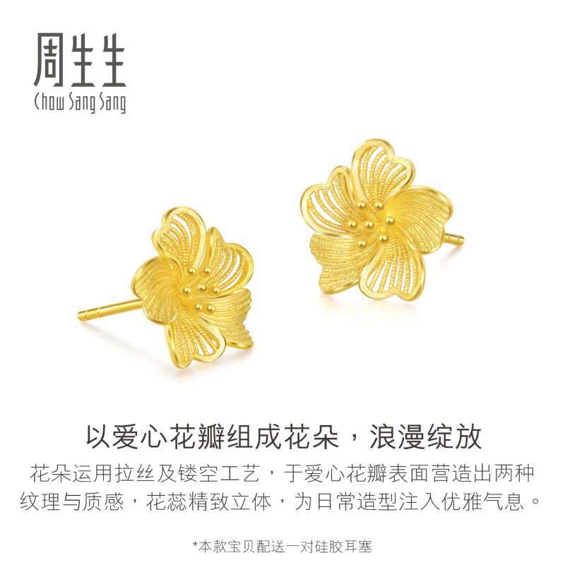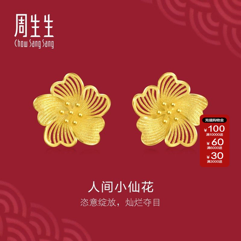 周生生生生有囍系列足金耳钉人间小仙花黄金耳饰95305E定价