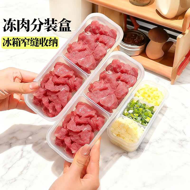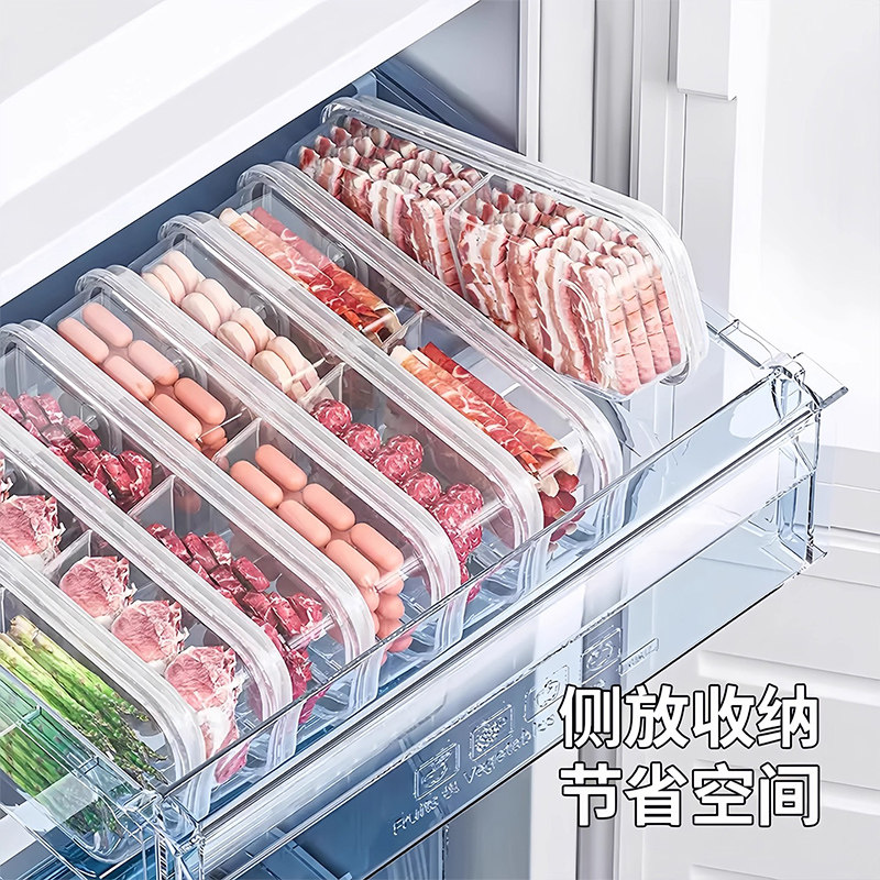 彩界冰箱冻肉分格盒子家用食物蔬菜备菜整理分装密封收纳保鲜盒