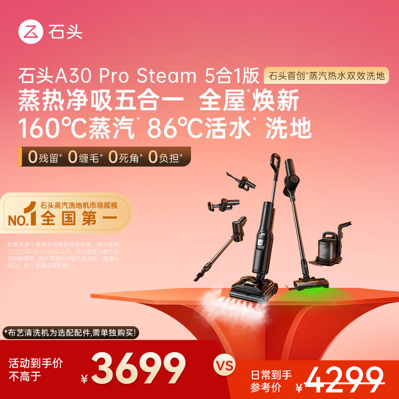 石头智能蒸汽热水洗地机A30 Pro Steam躺平0缠全向助力吸拖一体