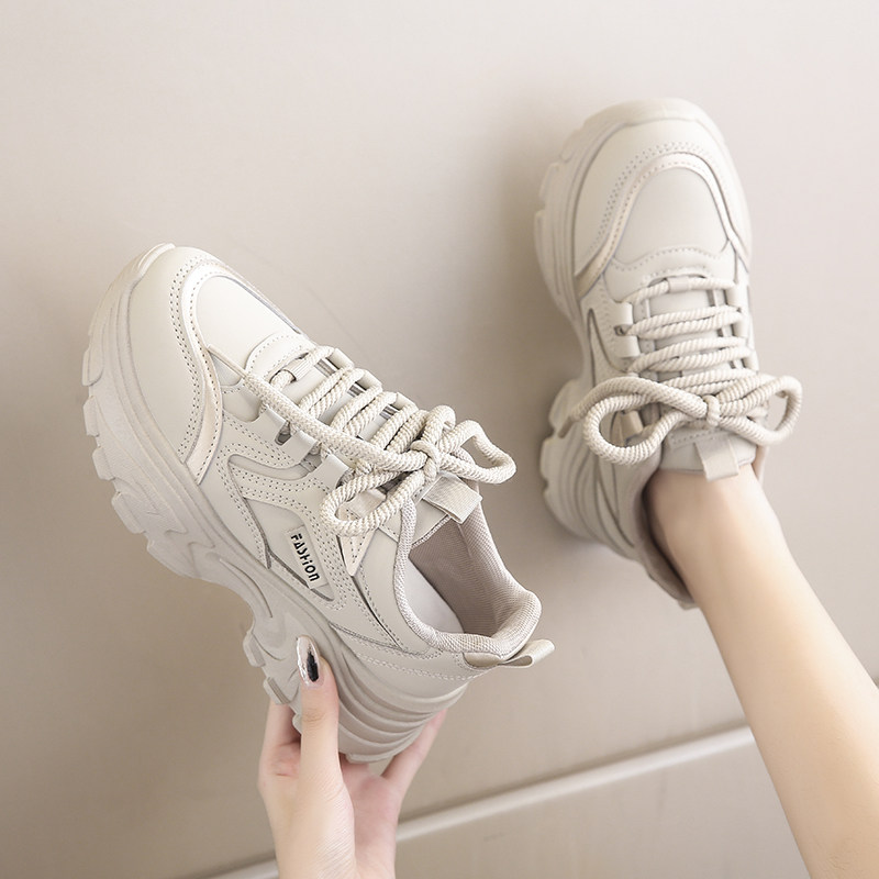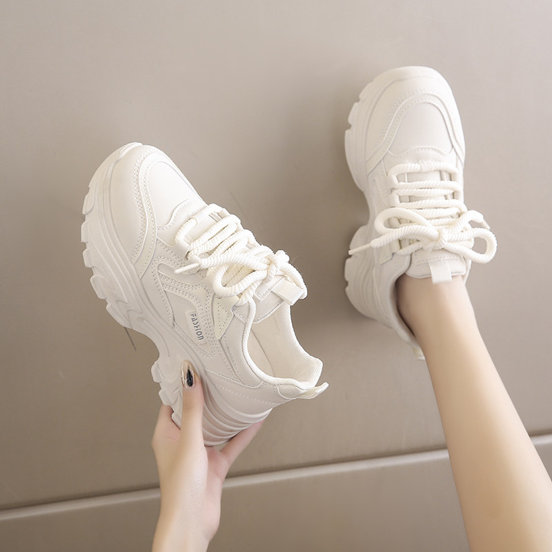 品牌踩屎感老爹鞋女2024秋新款小个子增高运动鞋厚底白色休闲鞋