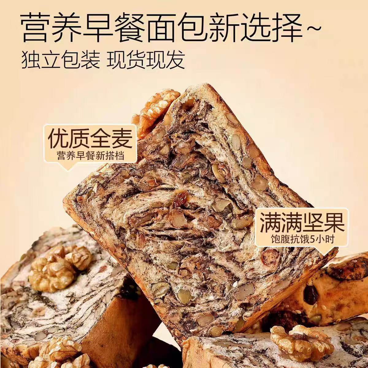 全麦吐司面包大学生早餐坚果面包无糖醇香无添加健康零食全麦面包