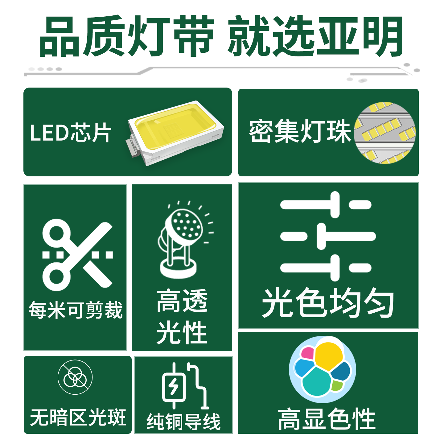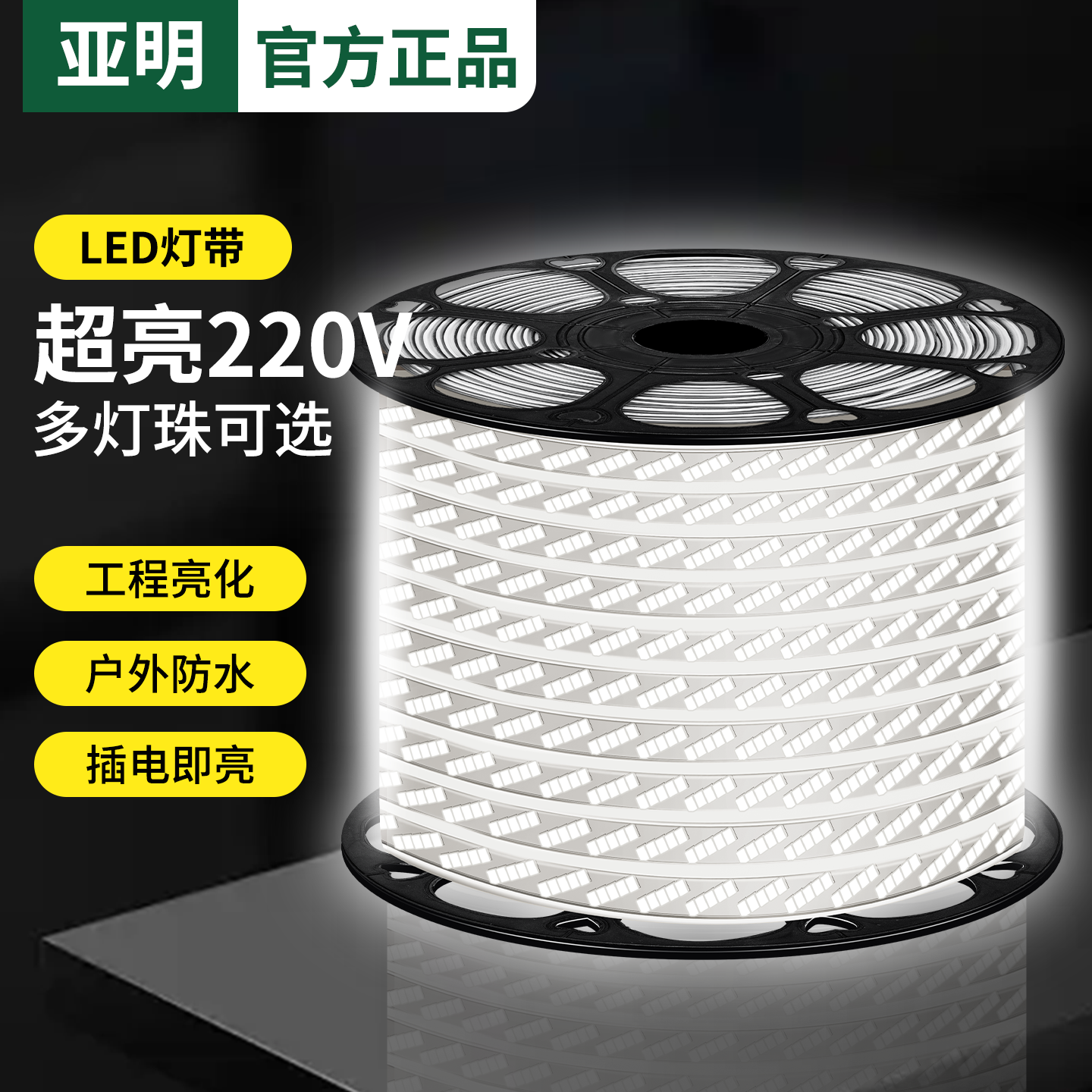 亚明LED灯带220V超亮户外防水工程亮化室外客厅家用灯条店铺商用
