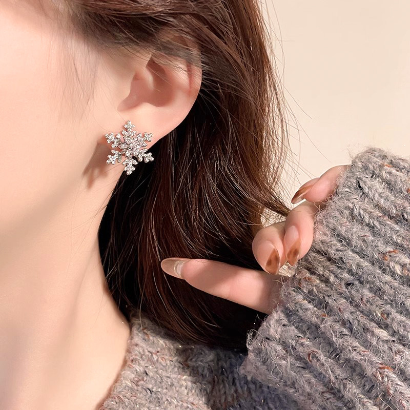圣诞节雪花耳钉女2025新款爆款高级感气质大气耳饰适合冬天的耳环