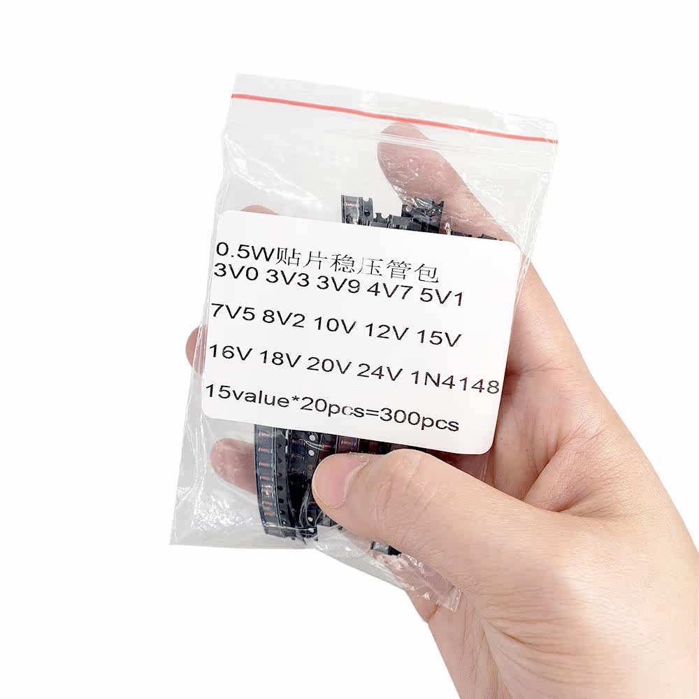 LL34贴片稳压二极管包1/2W 3v—24v常用15种各20个 含有1N4148