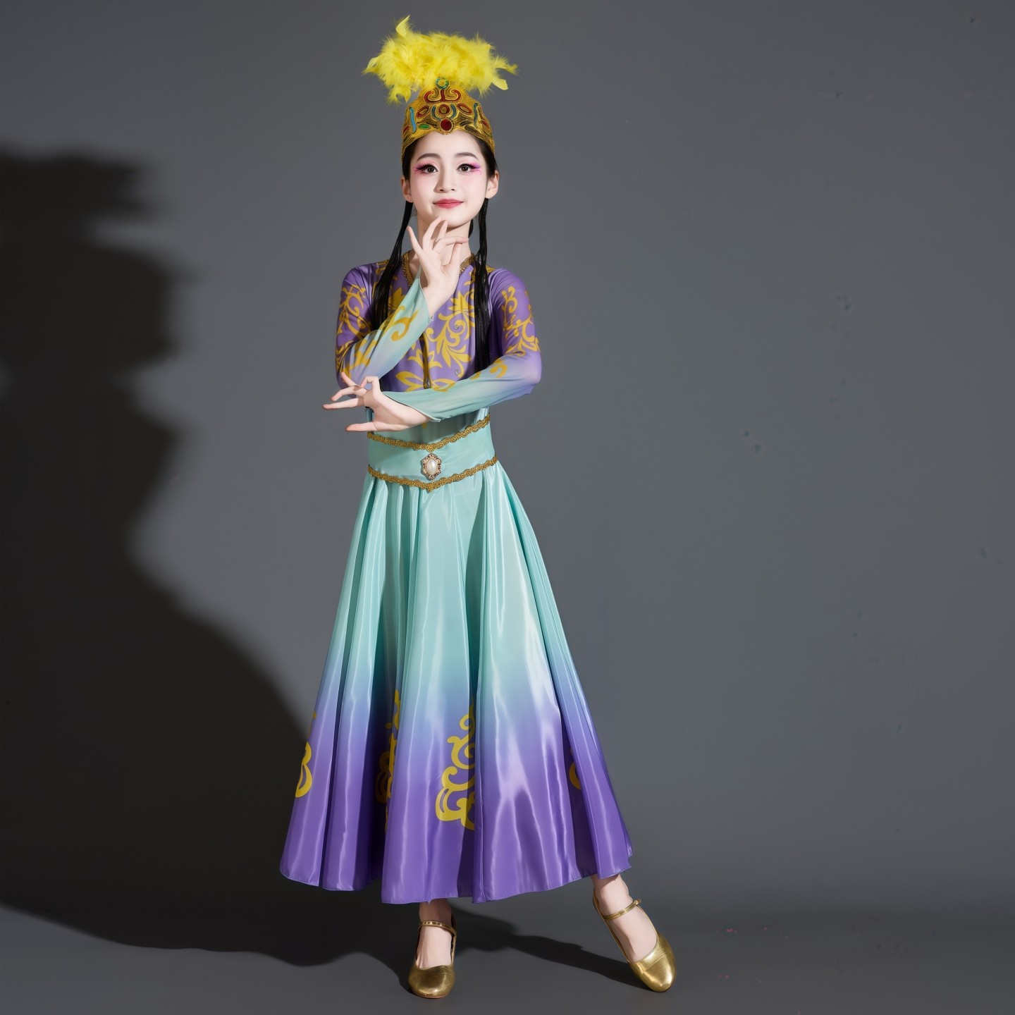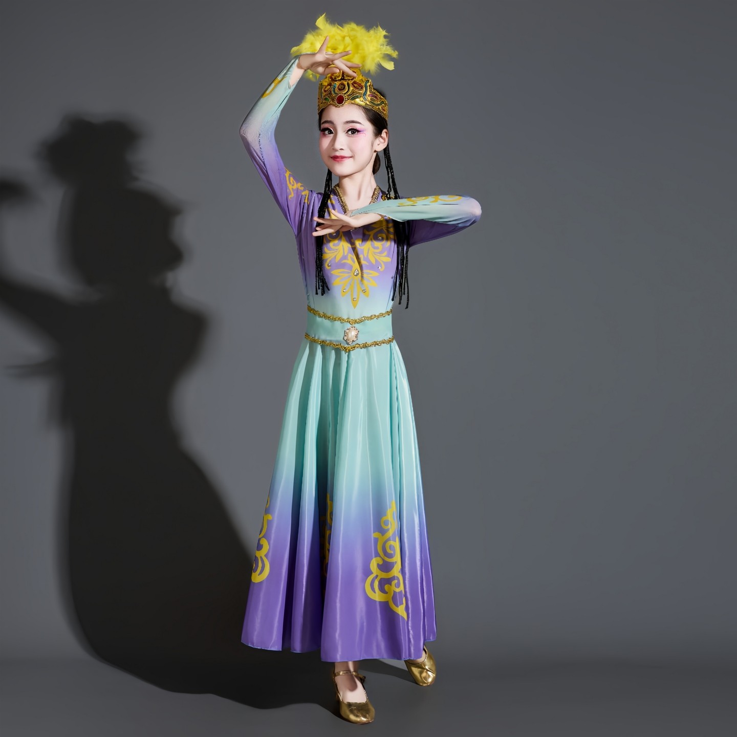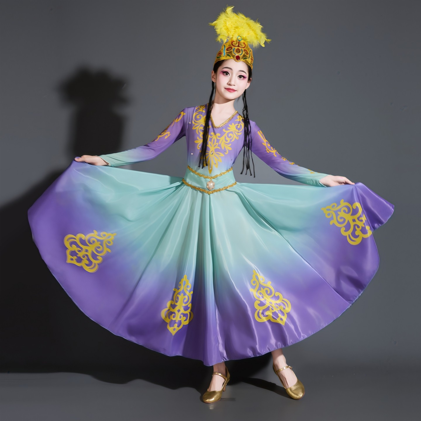 绽放新娃哈哈维吾尔族儿童舞蹈新疆舞演出服小小古丽民族风大摆裙