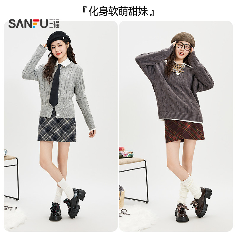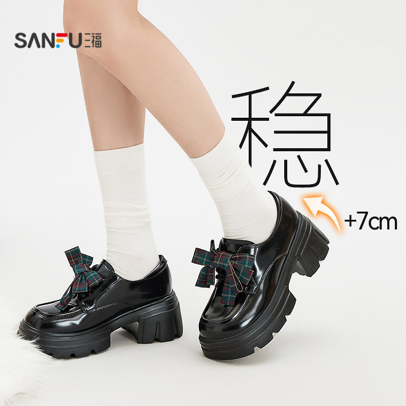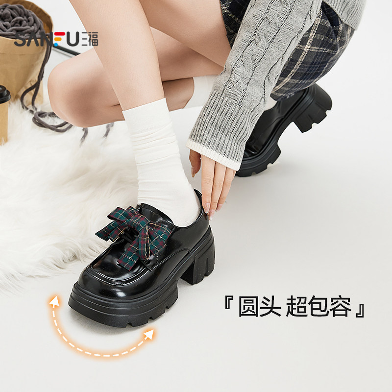 三福女乐福鞋秋季智性学院校园风蝴蝶结装饰休闲女鞋846832