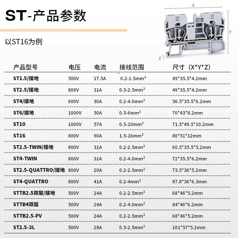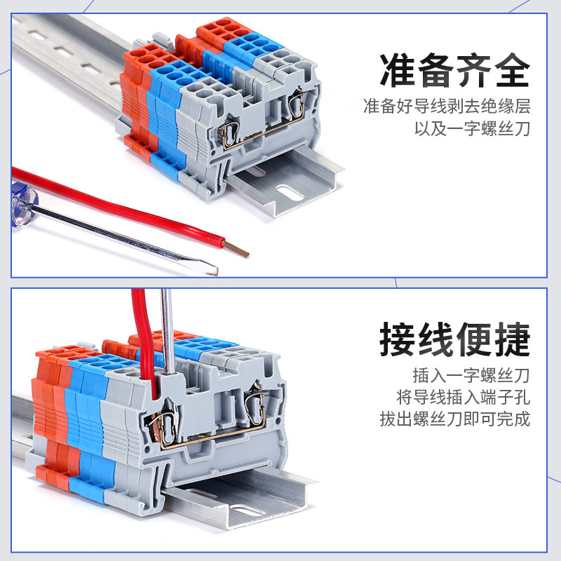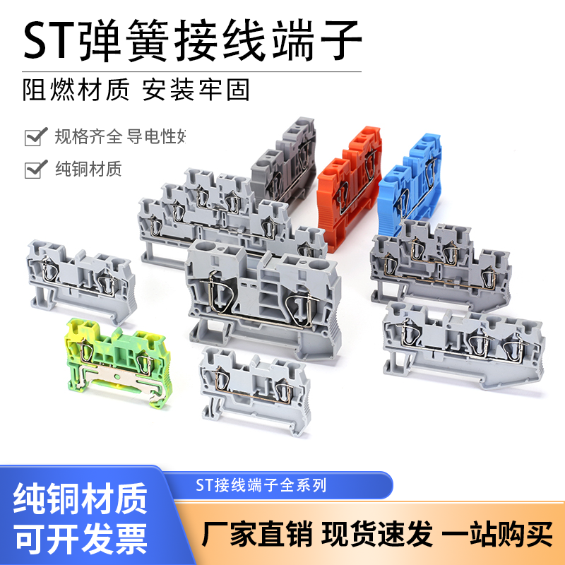 ST2.5快速接线端子PT阻燃纯铜直插式弹簧连接器UK2.5B导轨接线排