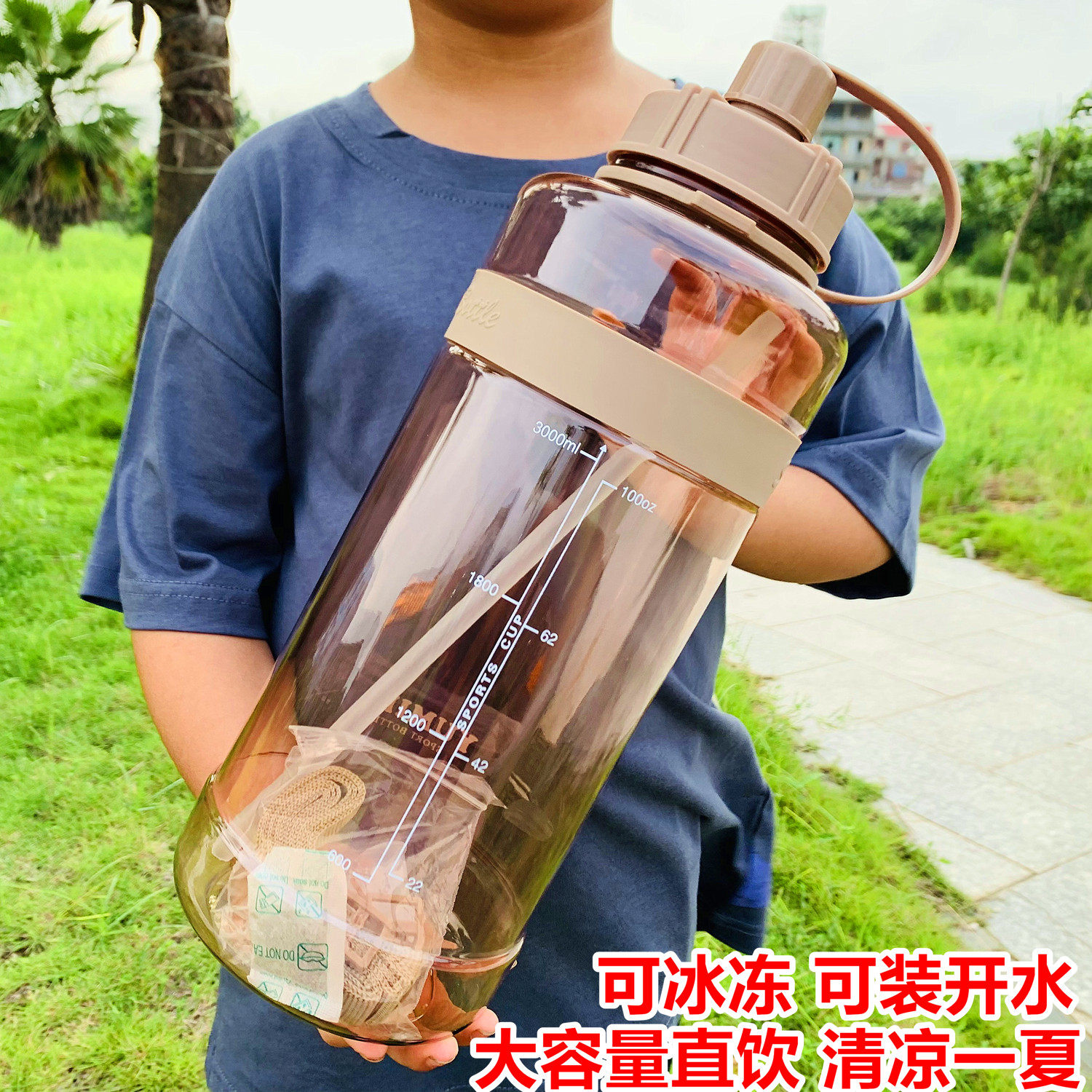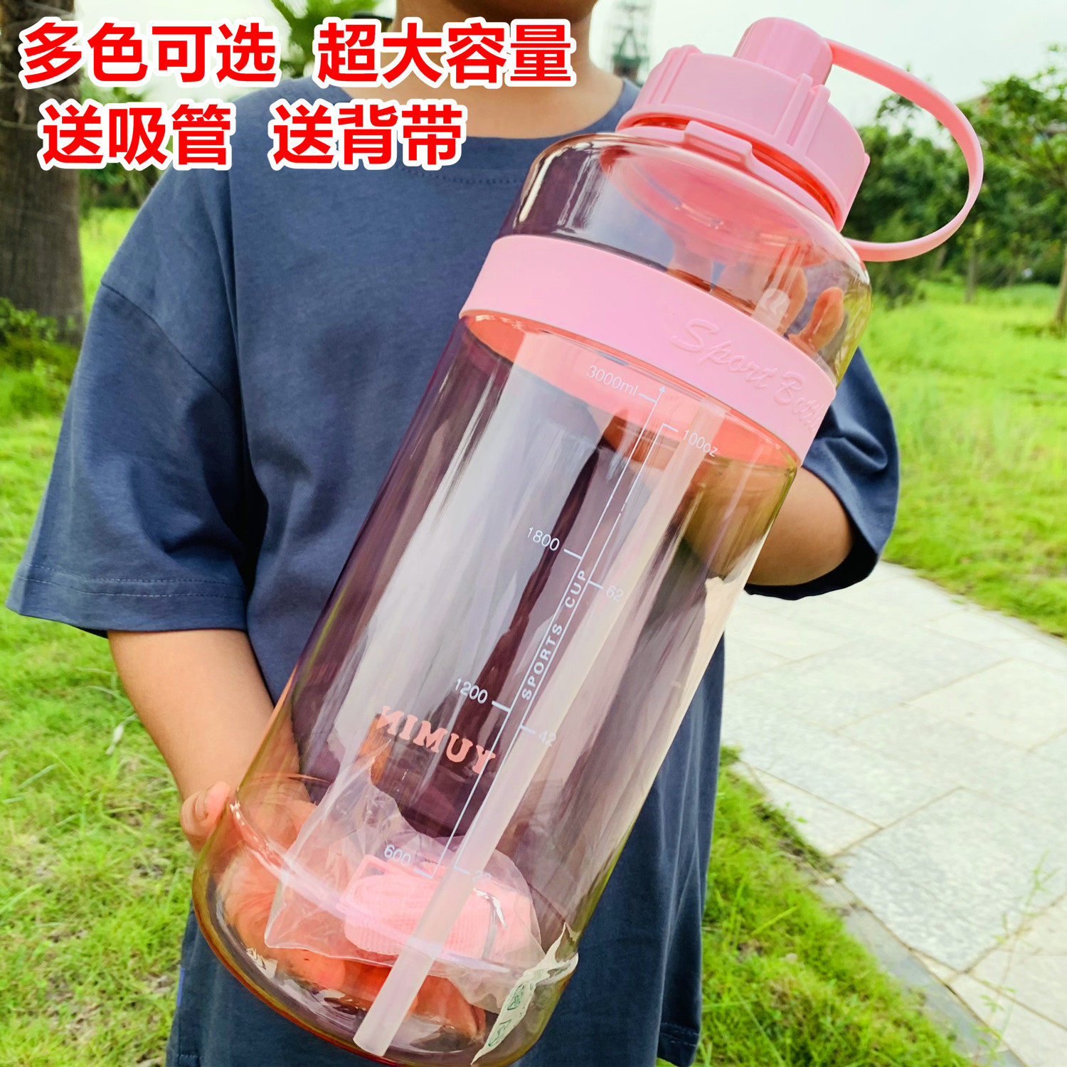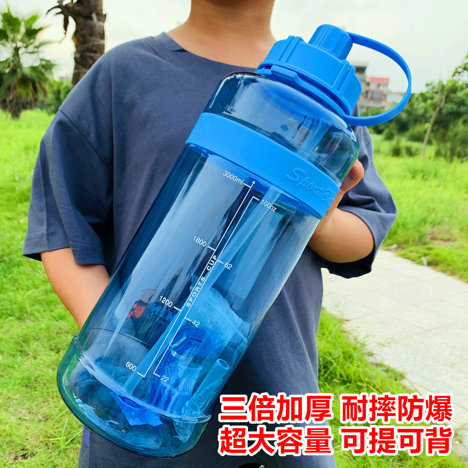 运动水杯超大容量水壶男3000ml便携塑料太空杯夏季工地大号茶杯子
