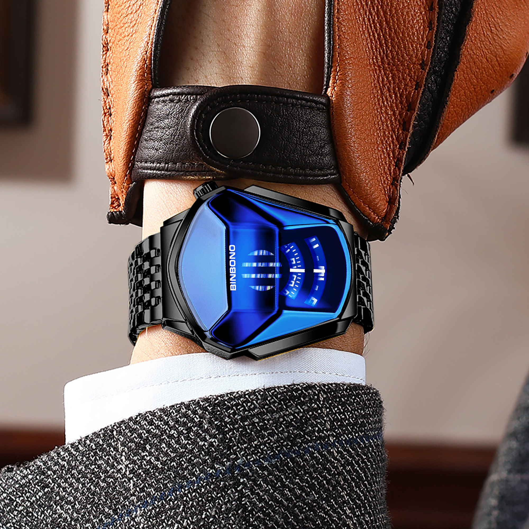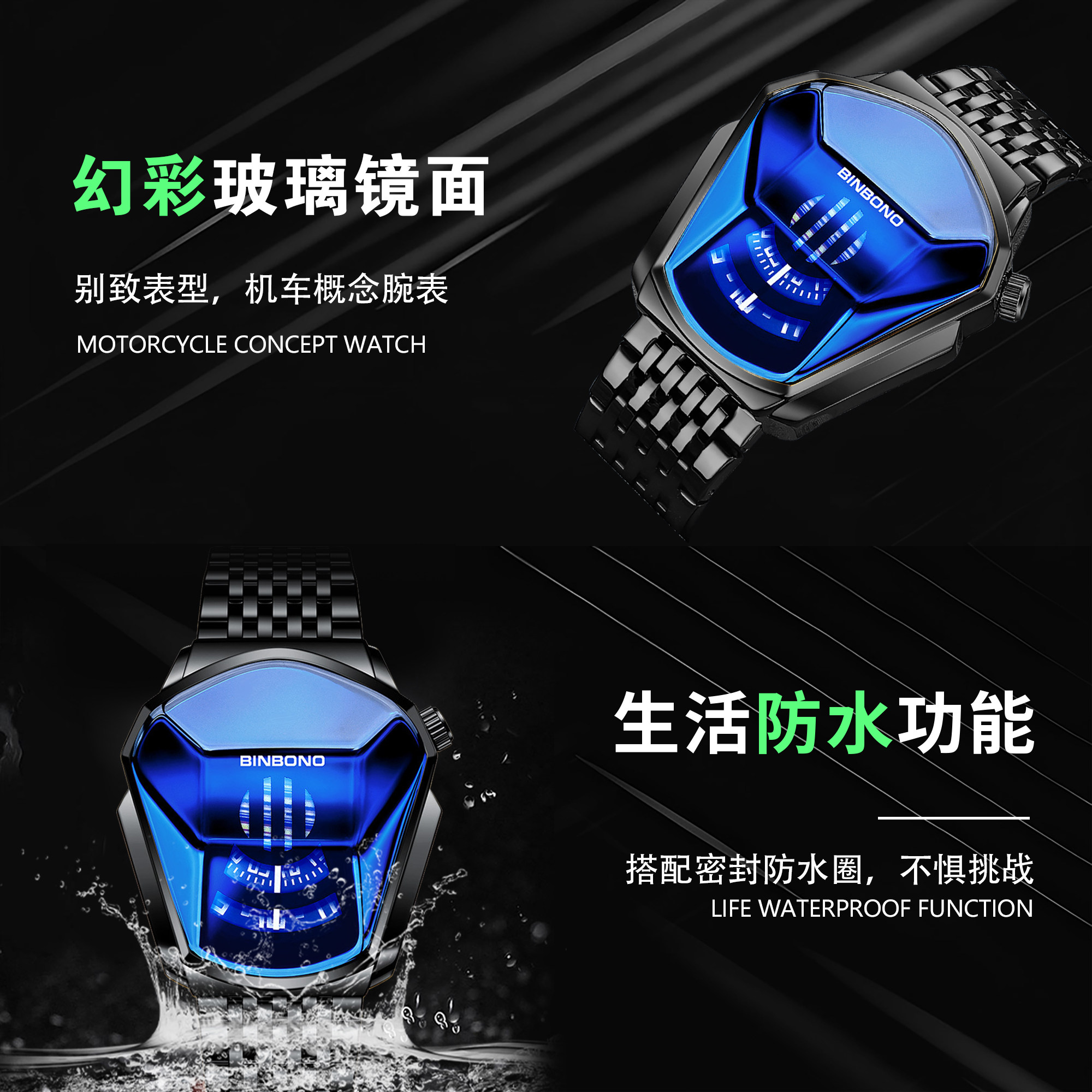 宾邦男士手表潮流shopee手表风格机车概念时尚潮流大表盘学生腕表